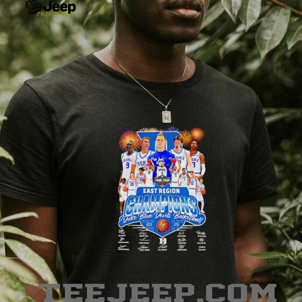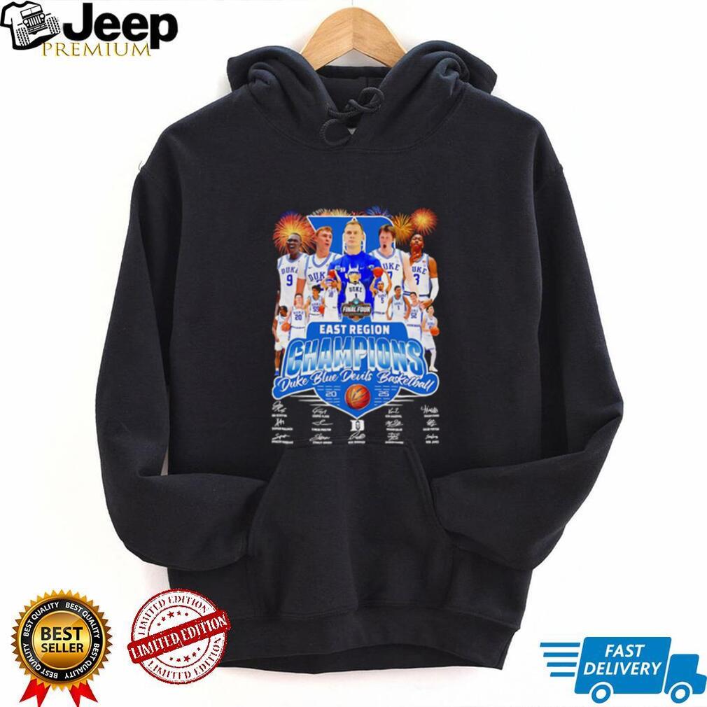 The “Final Four East Region Champions Duke Blue Devils Basketball 2025 Shirt” commemorates a hypothetical, yet highly anticipated, achievement: the Duke Blue Devils Men’s Basketball team winning the East Region Championship and advancing to the Final Four of the 2025 NCAA Men’s Basketball Tournament. This shirt serves as a memento of a successful regional victory and a testament to the team’s skill and determination. It’s designed to resonate with Duke Blue Devils fans, alumni, and supporters of college basketball, celebrating a potential tournament triumph. The design would prominently feature the phrase “Final Four East Region Champions,” along with the Duke Blue Devils logo, the year “2025,” and potentially imagery related to the tournament or the team’s mascot.