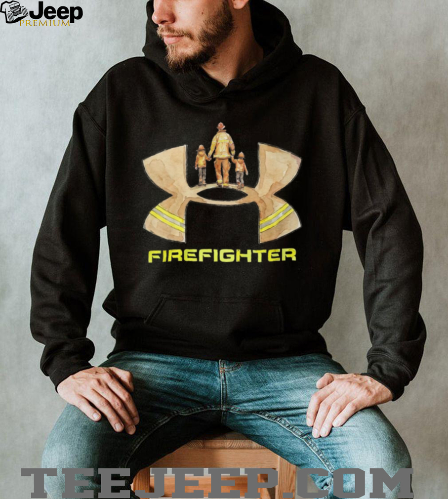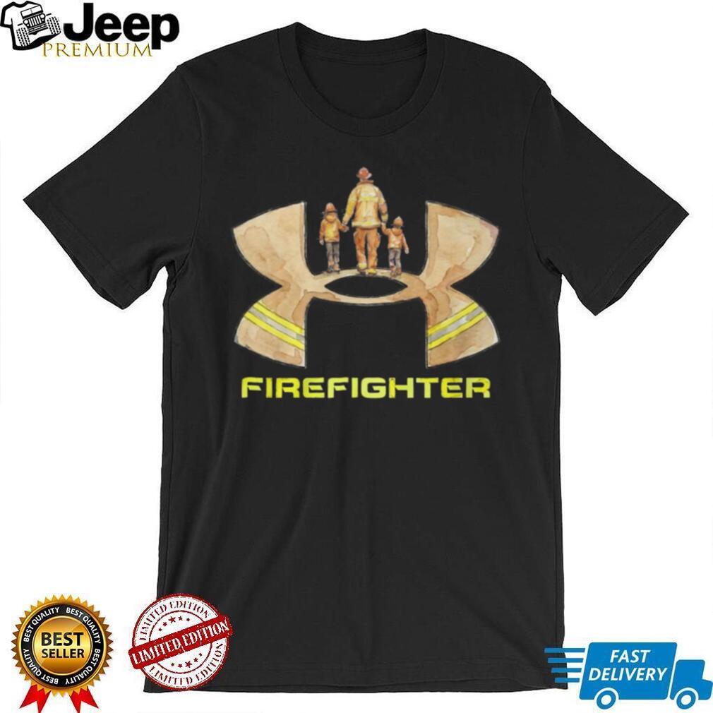 (Firefighter Dad and Children Watercolor Shield Hero T Shirt)