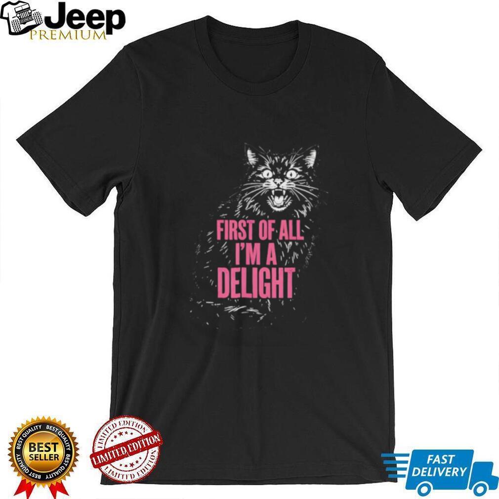 First Of All I’m A Delight Angry Hissing Cat Funny Sarcastic T Shirt, Treat yourself or make a great gift for your loved ones