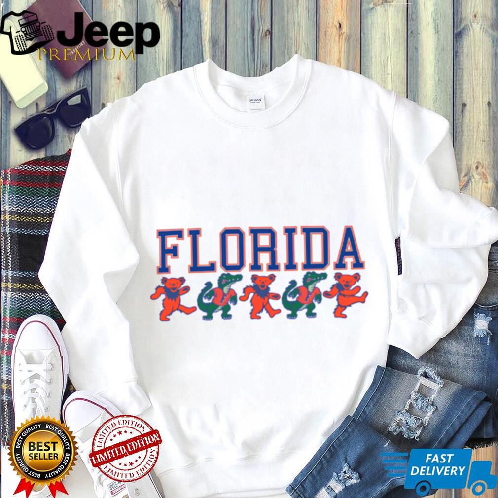 Show your Gator pride with a touch of psychedelic flair! This Florida Gator x Grateful Dead “Mascot Bears” T-shirt is the ultimate mashup for fans who love the Gators and the Dead. This unique tee combines the iconic UF mascot with the Grateful Dead’s dancing bears. Perfect for game day, concerts, or casual wear, this shirt is a must-have for any true Gator Deadhead.