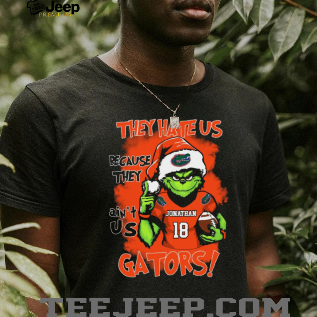 This custom name Grinch Christmas shirt isn’t just another face in the crowd. Featuring the iconic Grinch decked out in Gators gear alongside the famous quote “They Hate Us Because They Ain’t Us”, this tee solves the problem of finding a unique and humorous way to support your team during the holidays. It’s for the Gator fan with a sense of humor, who wants to stand out at the game day party or Christmas gathering. Made from a soft and comfortable cotton blend, this shirt is perfect for showing off your team spirit all season long.