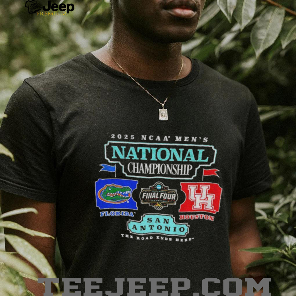 A “Florida Gators vs Houston Cougars 2025 NCAA Men’s National Championship the road ends here shirt” would commemorate the final matchup of the 2025 NCAA Men’s Basketball Tournament, where the Florida Gators and the Houston Cougars competed for the national title. The phrase “the road ends here” signifies the culmination of the long and arduous journey through March Madness, with the championship game being the ultimate destination. The shirt’s design would likely feature both teams’ logos, perhaps facing each other or intertwined, along with the NCAA Men’s National Championship branding and the year 2025, highlighting the significance of this final contest.