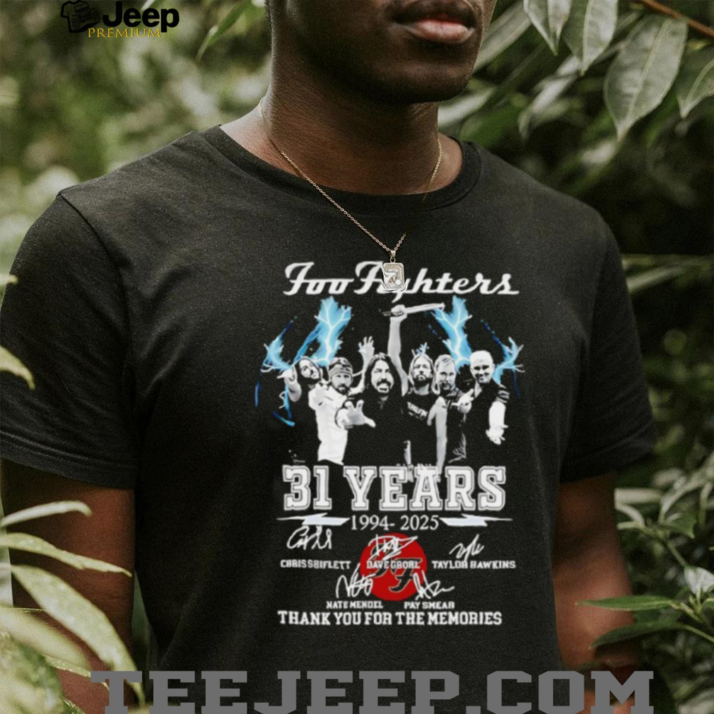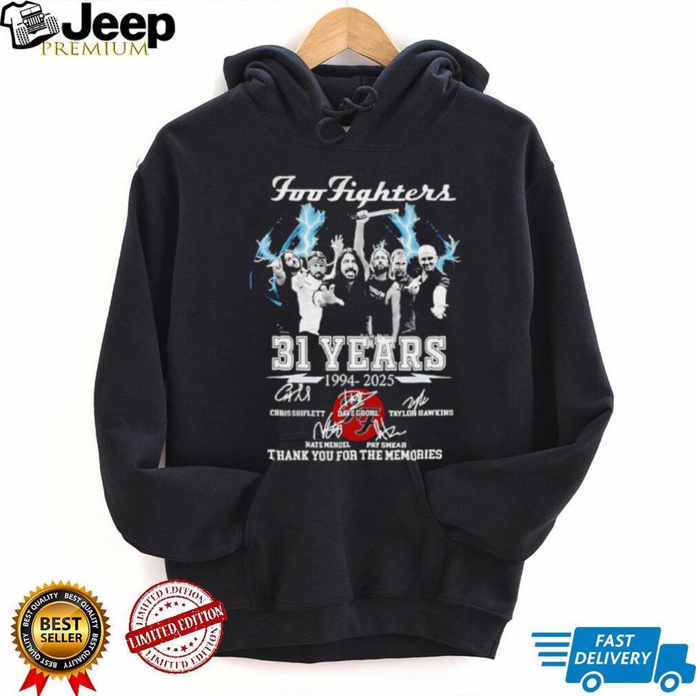The “Foo Fighters 31 years 1994-2025 thank you for the memories signature shirt” is a powerful tribute to one of modern rock’s most enduring and beloved bands. This shirt celebrates the Foo Fighters’ impressive longevity, marking 31 years since their inception in 1994 by Nirvana drummer Dave Grohl, through to 2025. It’s a heartfelt “thank you” to the band for their incredible music, unforgettable live performances, and the countless memories they’ve created for millions of fans worldwide. This piece of merchandise is more than just a shirt; it’s a collector’s item for anyone who has headbanged to “Everlong,” belted out “My Hero,” or found solace in the raw energy of their anthems.