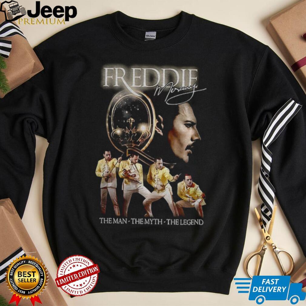 This “Freddie Mercury The Man – The Myth – The Legend signature shirt” will undoubtedly become a cherished 기념품 for Queen enthusiasts and music lovers worldwide. It’s more than just a piece of clothing; it’s a tangible representation of the profound impact Freddie Mercury had on music and popular culture. The combination of the powerful epithet and the potential inclusion of his signature creates a personal and meaningful item that fans can treasure. It serves as a constant reminder of his extraordinary talent, his unforgettable performances, and the timeless music he created with Queen, ensuring his legend lives on for generations to come.