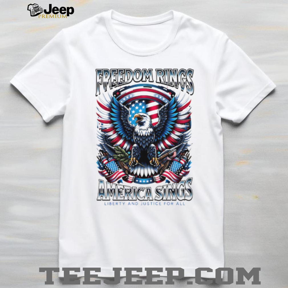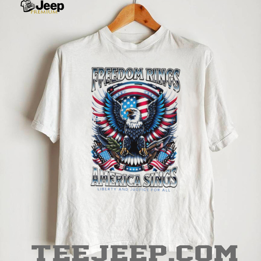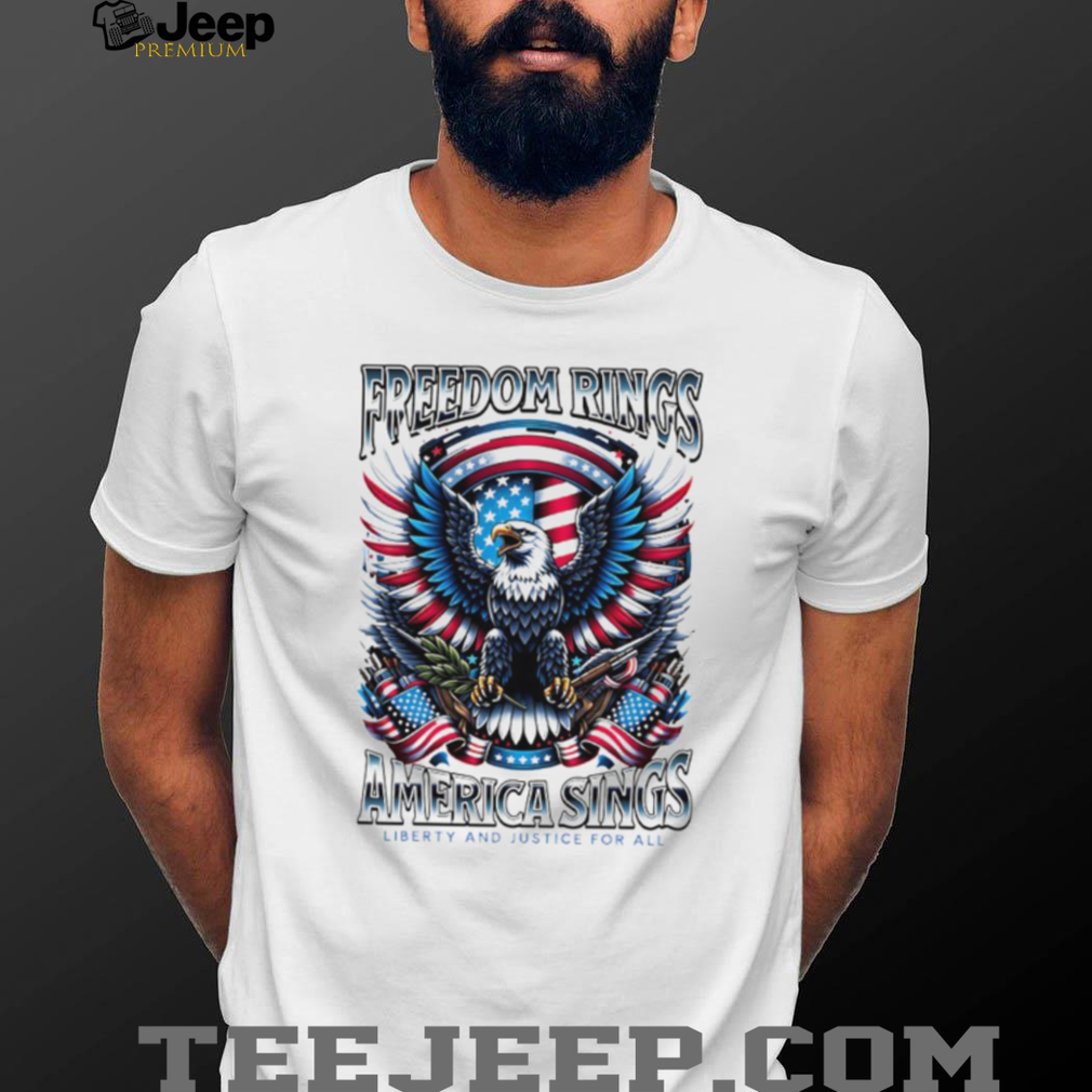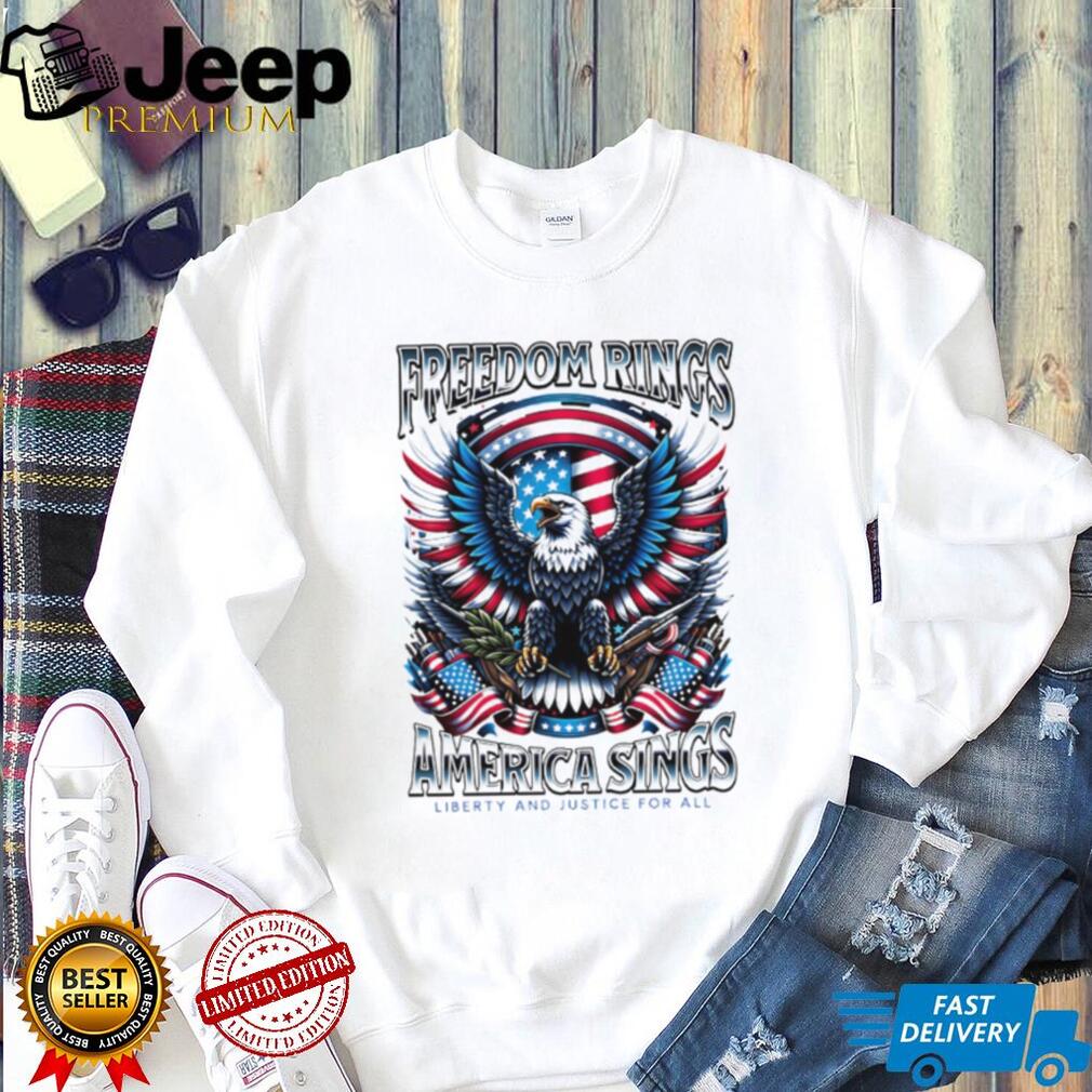 👕 About Freedom Rings America Sings Patriotic Eagle Liberty and Justice For All T Shirt