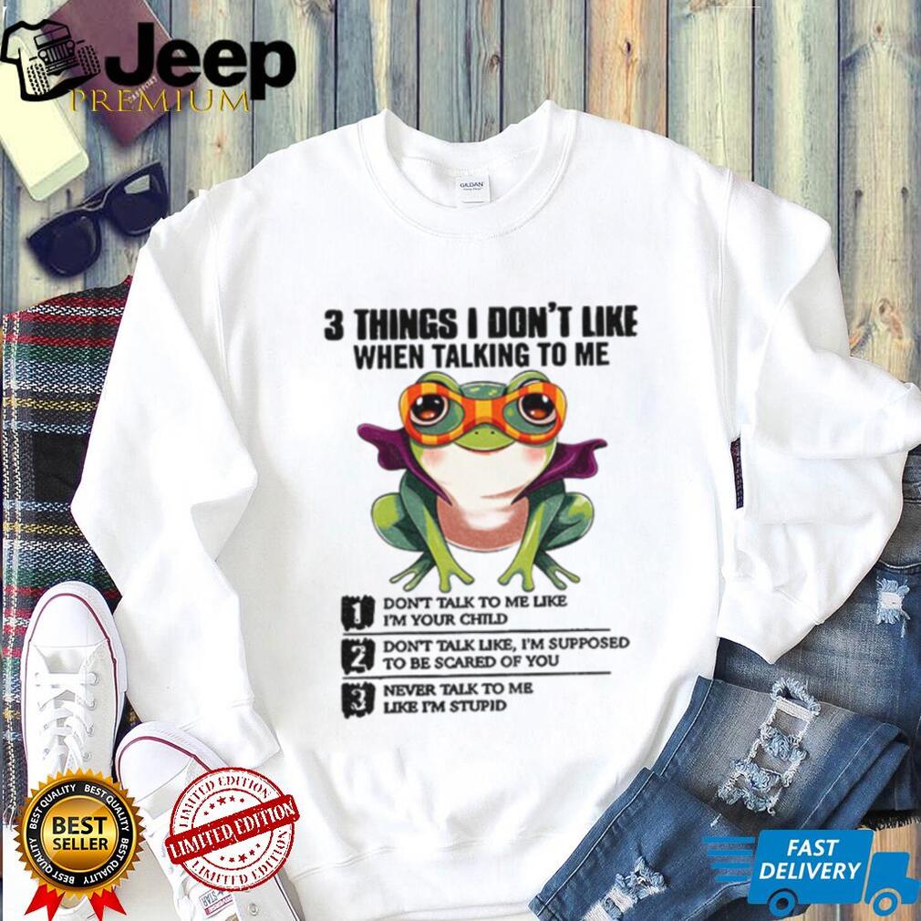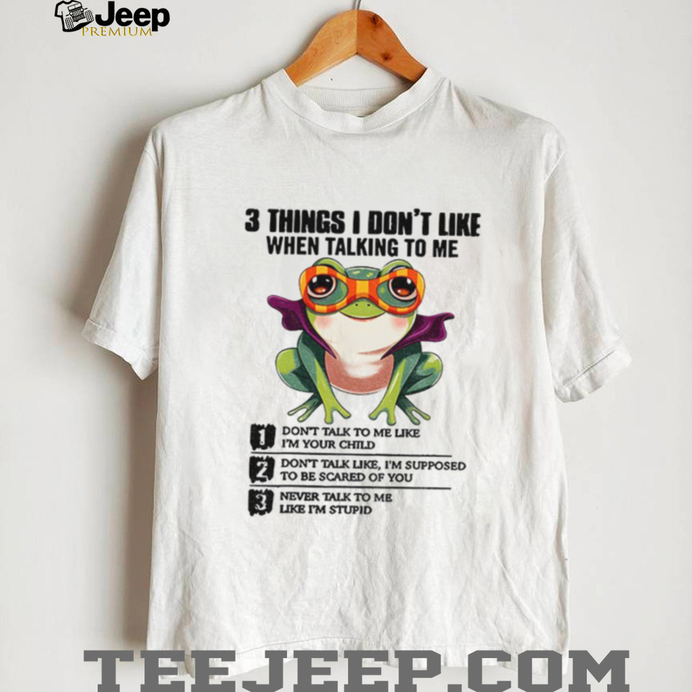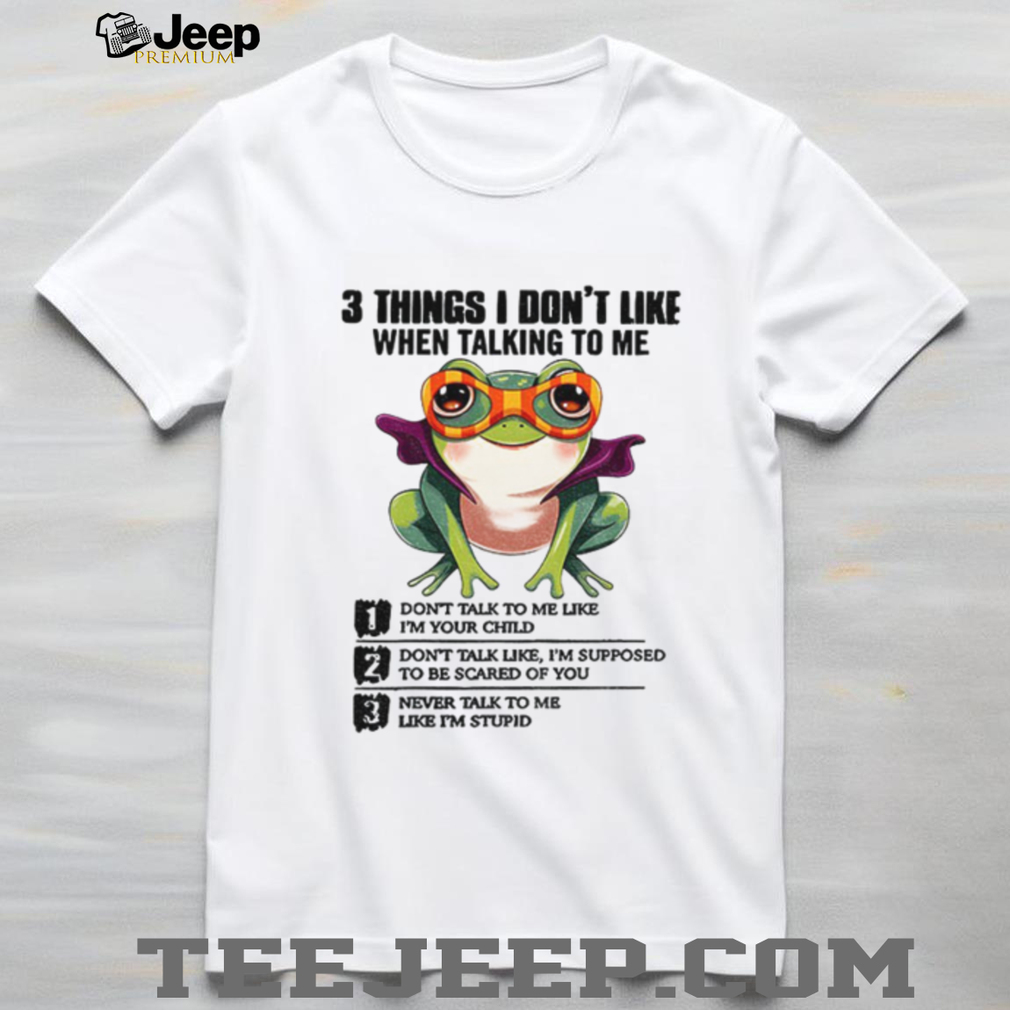 Are you tired of being talked down to? This “Frog 3 things I don’t like when talking to me” shirt speaks your mind without you having to say a word. This hilarious tee is perfect for anyone with a sharp wit and a low tolerance for condescension. Let this froggy friend do the talking for you and get ready for some knowing smiles!