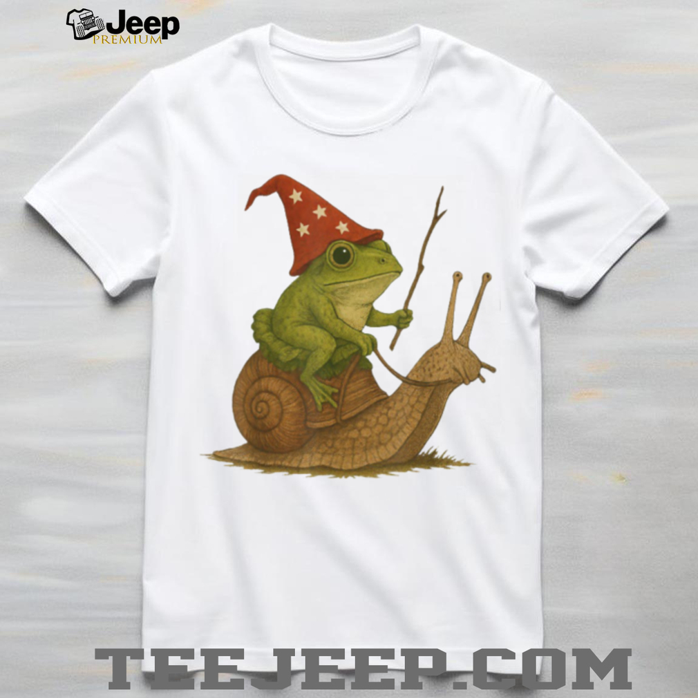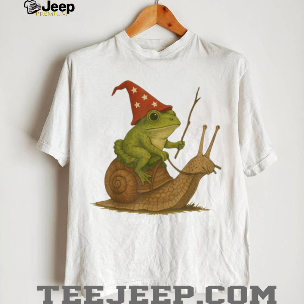 (Frog Wizard Riding Snail Off To Cause A Kerfuffle Whimsical Tee)Frog Wizard Riding Snail Off To Cause A Kerfuffle Whimsical Tee, Treat yourself or make a great gift for your loved ones