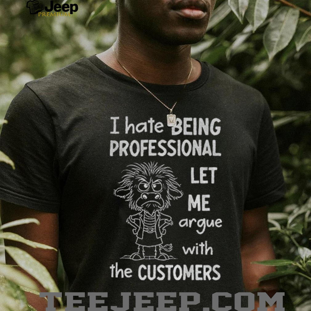 This Funny Cow “I Hate Being Professional” shirt is the perfect way to vent those customer service frustrations. Featuring a hilarious design of a cow ready to argue, this shirt will get laughs and knowing nods from coworkers and customers alike. Made from a soft, comfortable cotton blend, it’s ideal for wearing on the job or during your much-deserved days off. Available in sizes S to 3XL.
