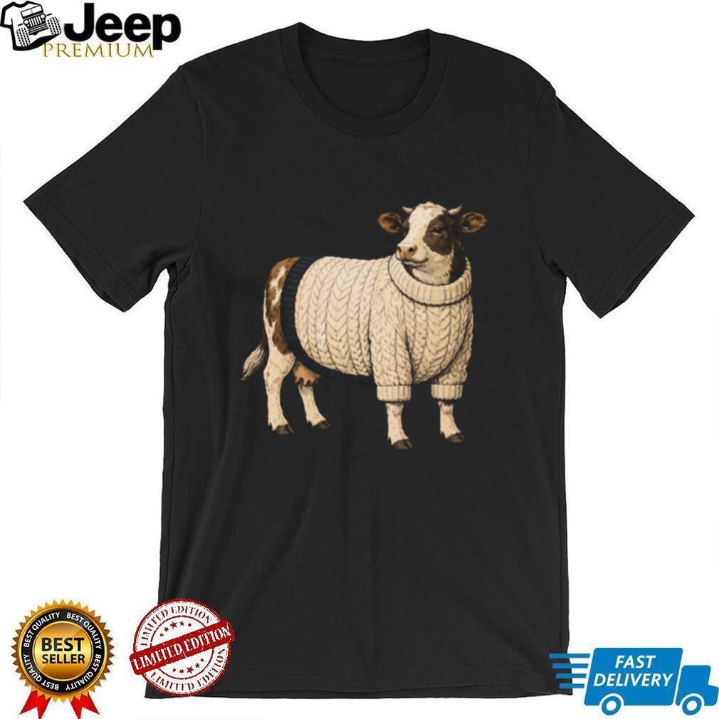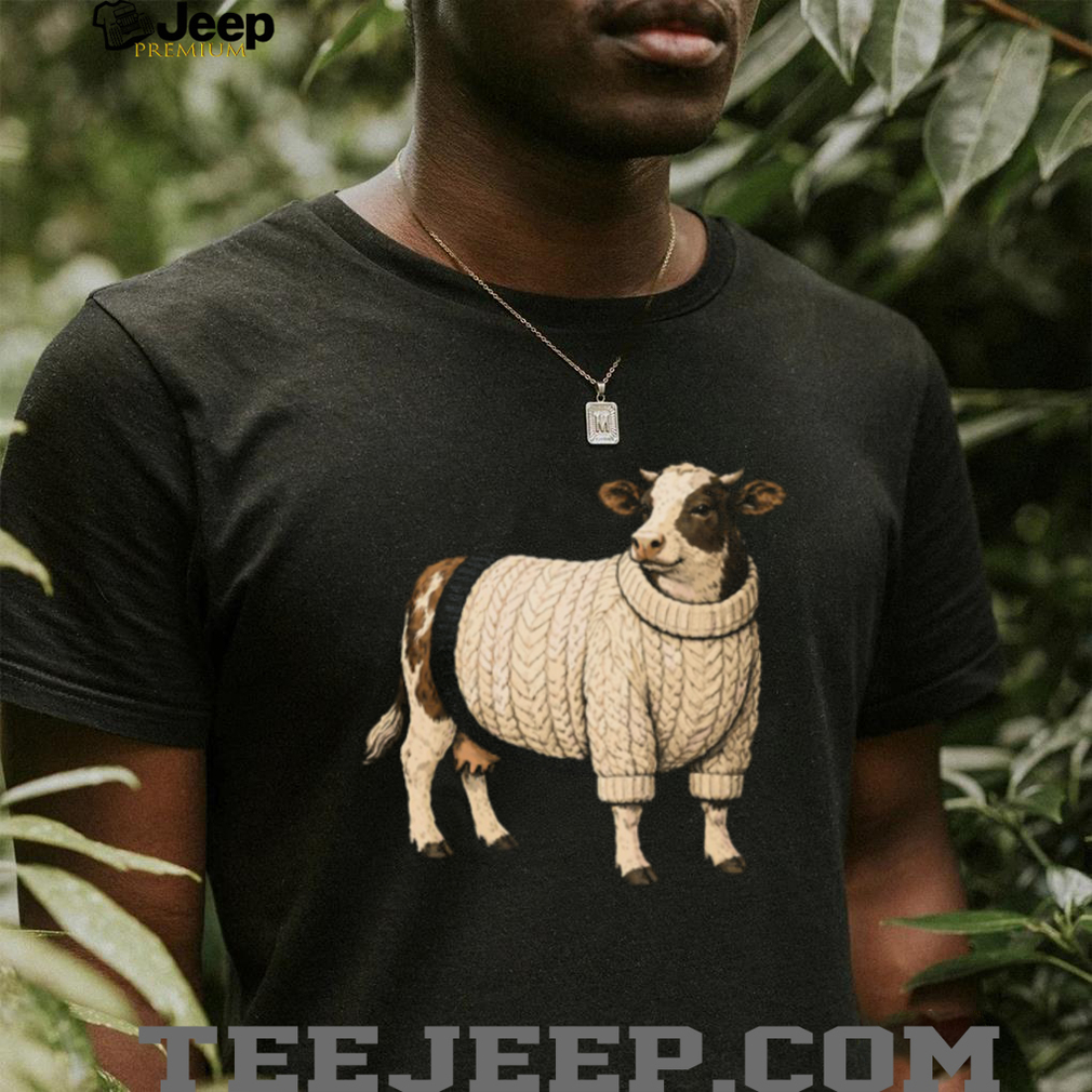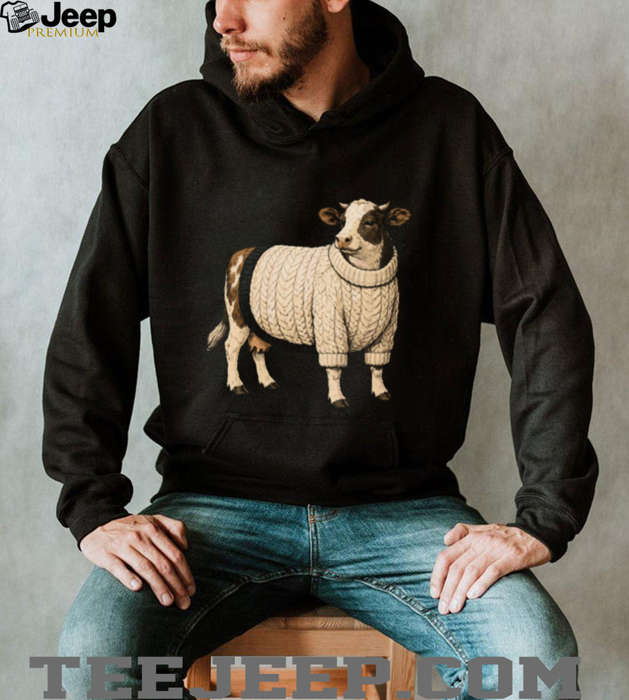 👕 About Funny Cow Wearing White Chunky Knit Sweater T Shirt