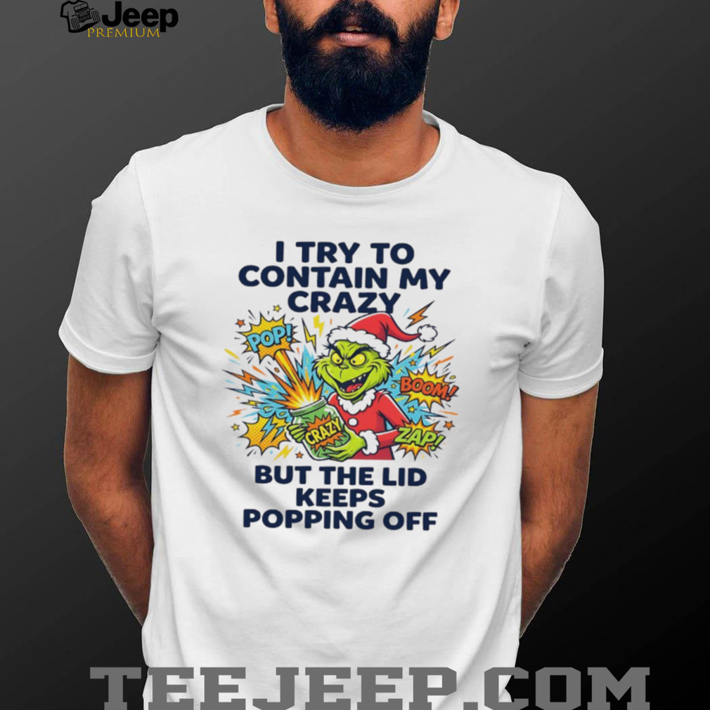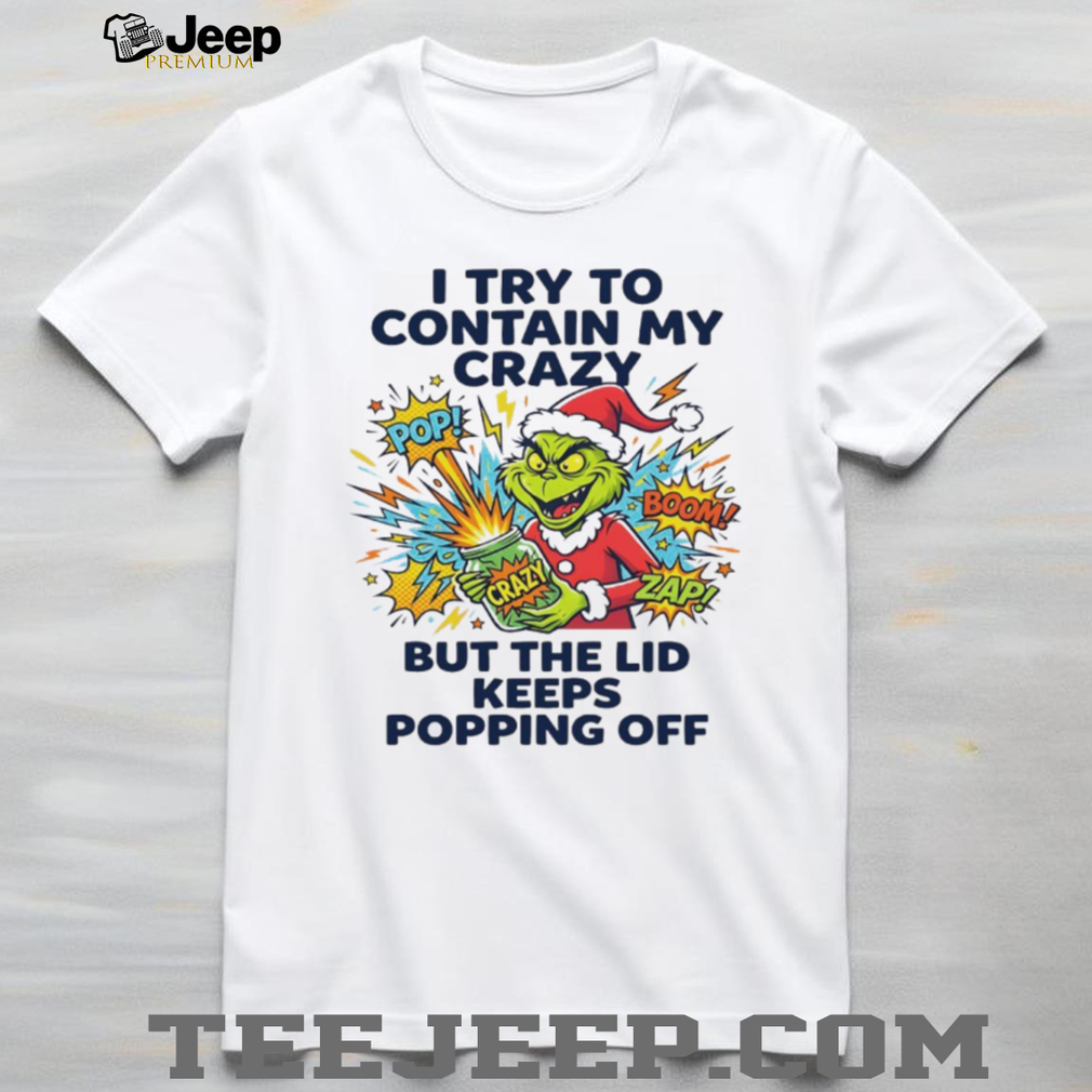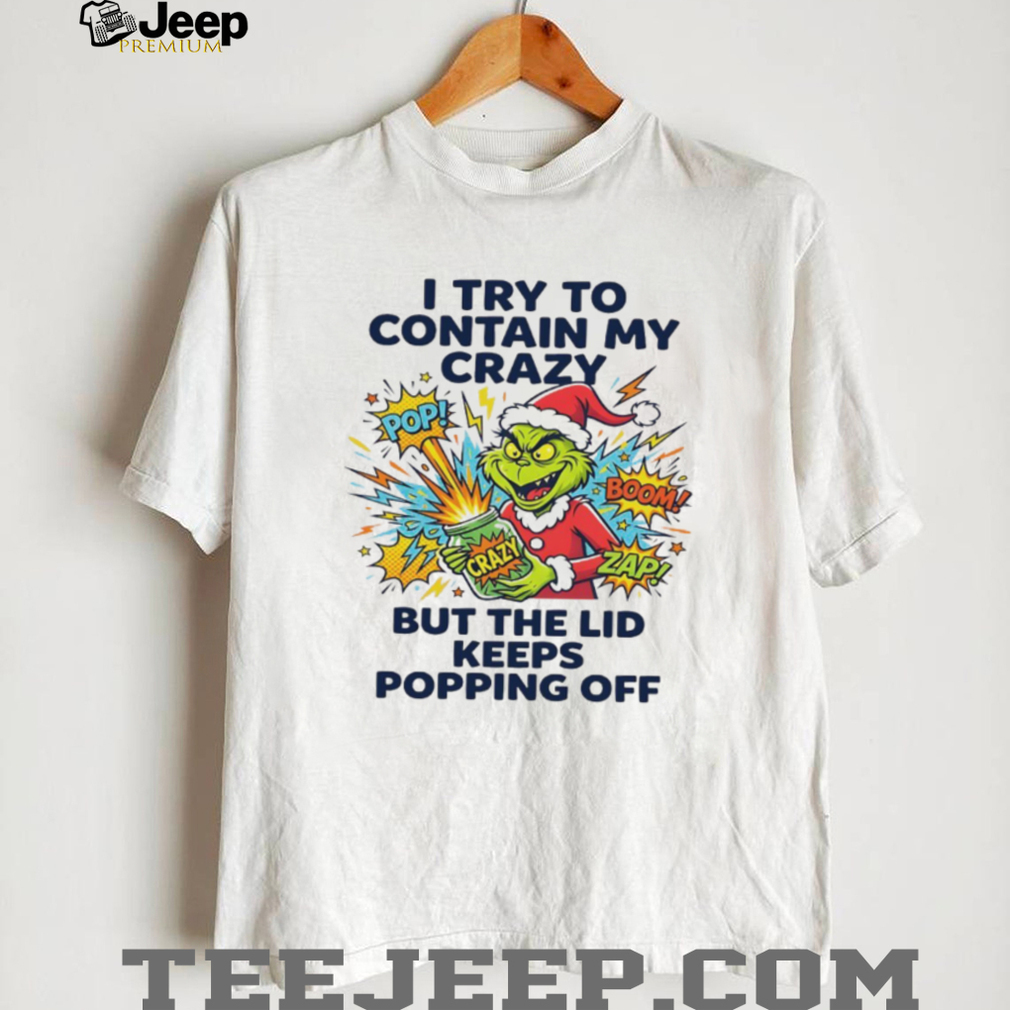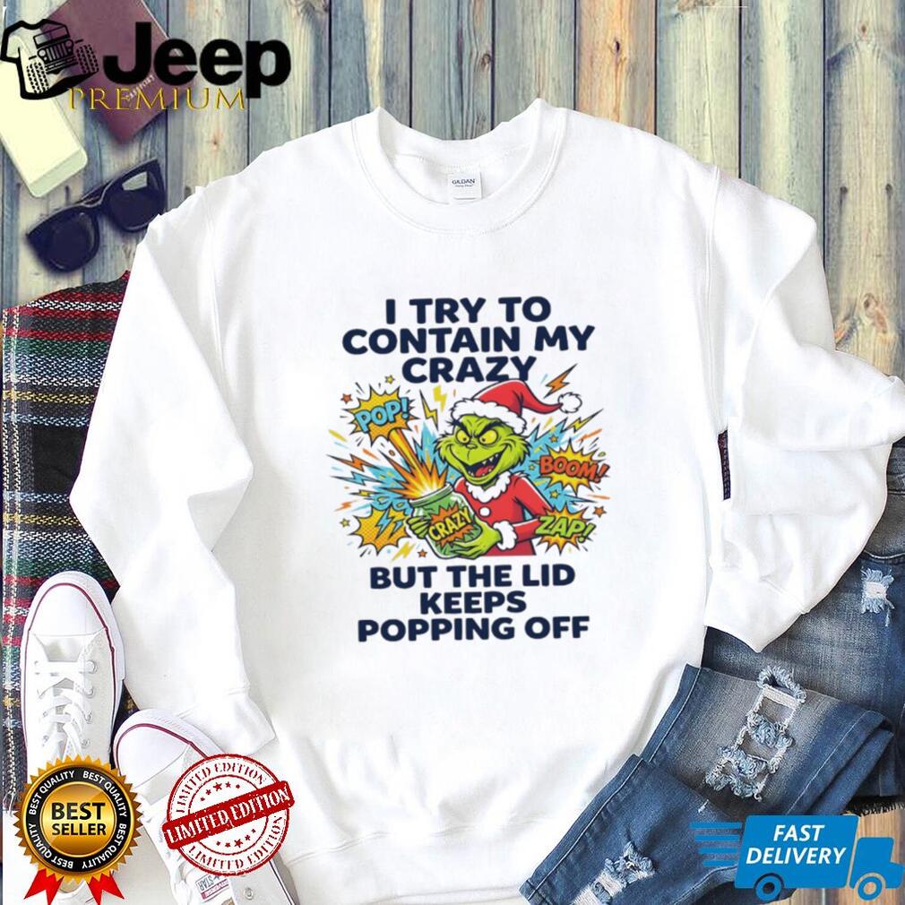 (Funny Grinch I Try To Contain My Crazy But The Lid Keeps Popping Off T Shirt)Apr 19