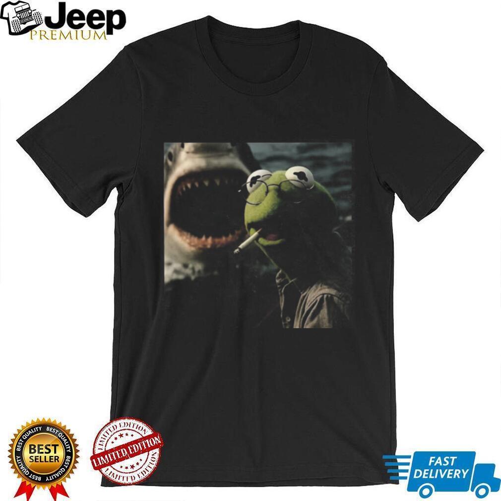 (Funny Kermit The Frog Smoking With Shark Vintage Graphic Tee)Funny Kermit The Frog Smoking With Shark Vintage Graphic Tee, Treat yourself or make a great gift for your loved ones