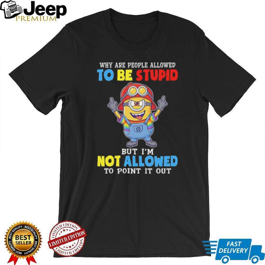 (Funny Minion Why Are People Allowed To Be Stupid Crewneck T Shirt)