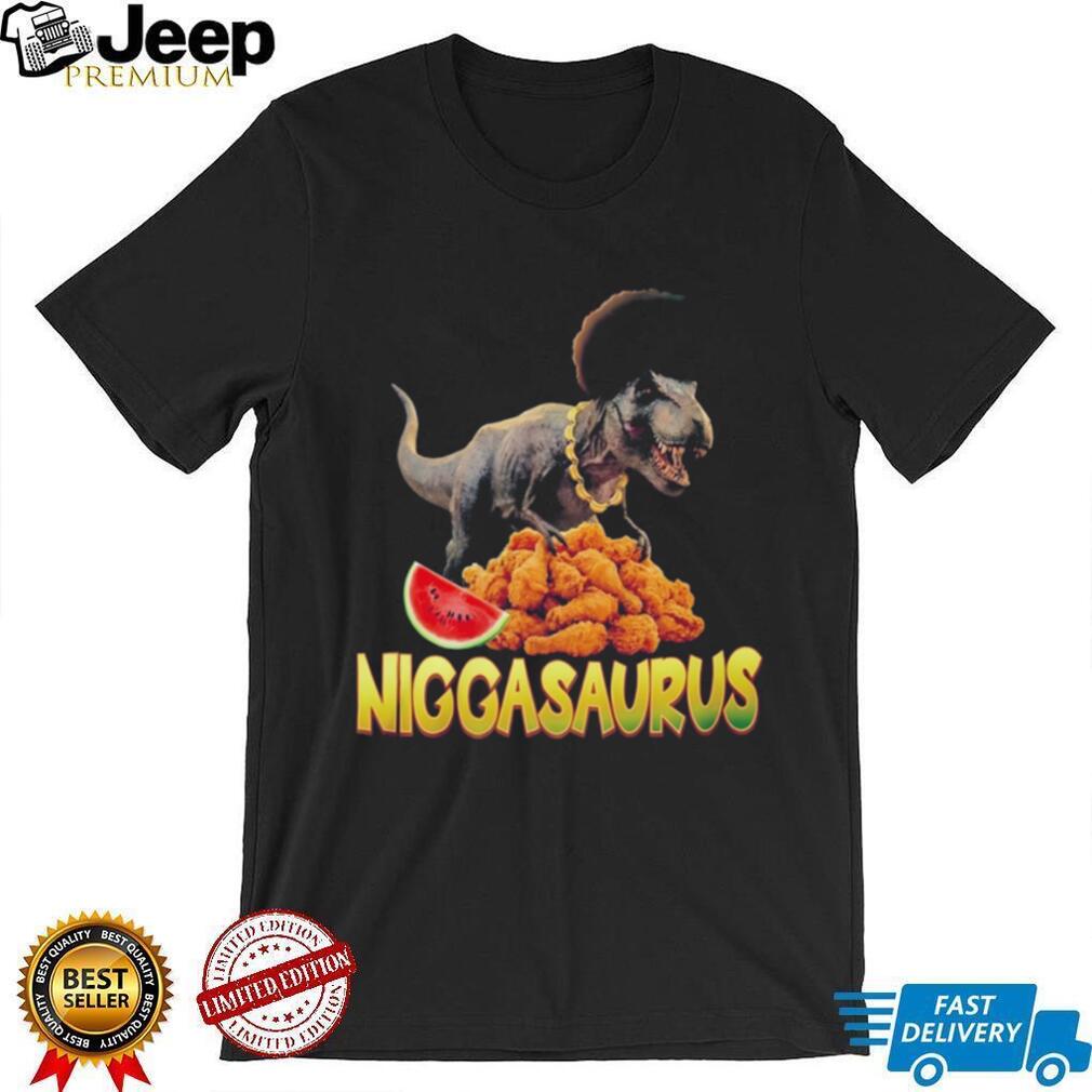 (Funny Niggasaurus T Rex Graphic Tee with Chicken & Watermelon)