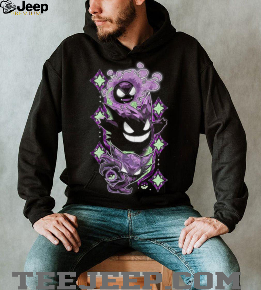 (Gengar Evolution Trio Ghost Pokemon Front and Back Print T Shirt)Gengar Evolution Trio Ghost Pokemon Front and Back Print T Shirt, Treat yourself or make a great gift for your loved ones