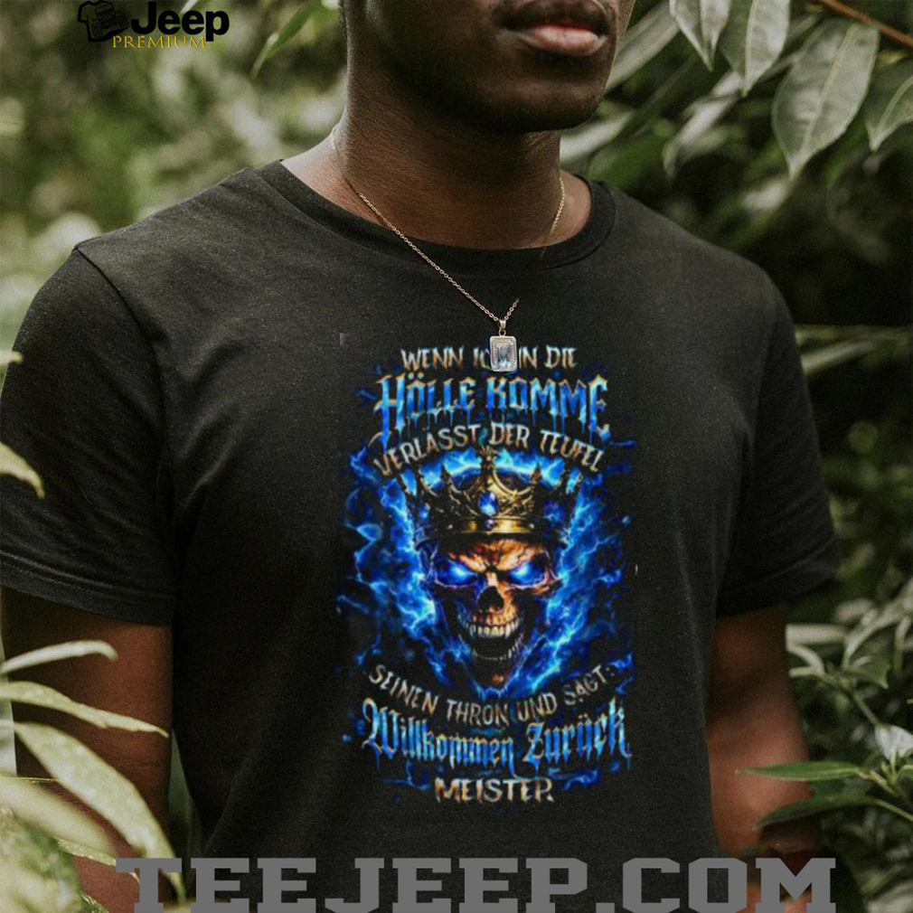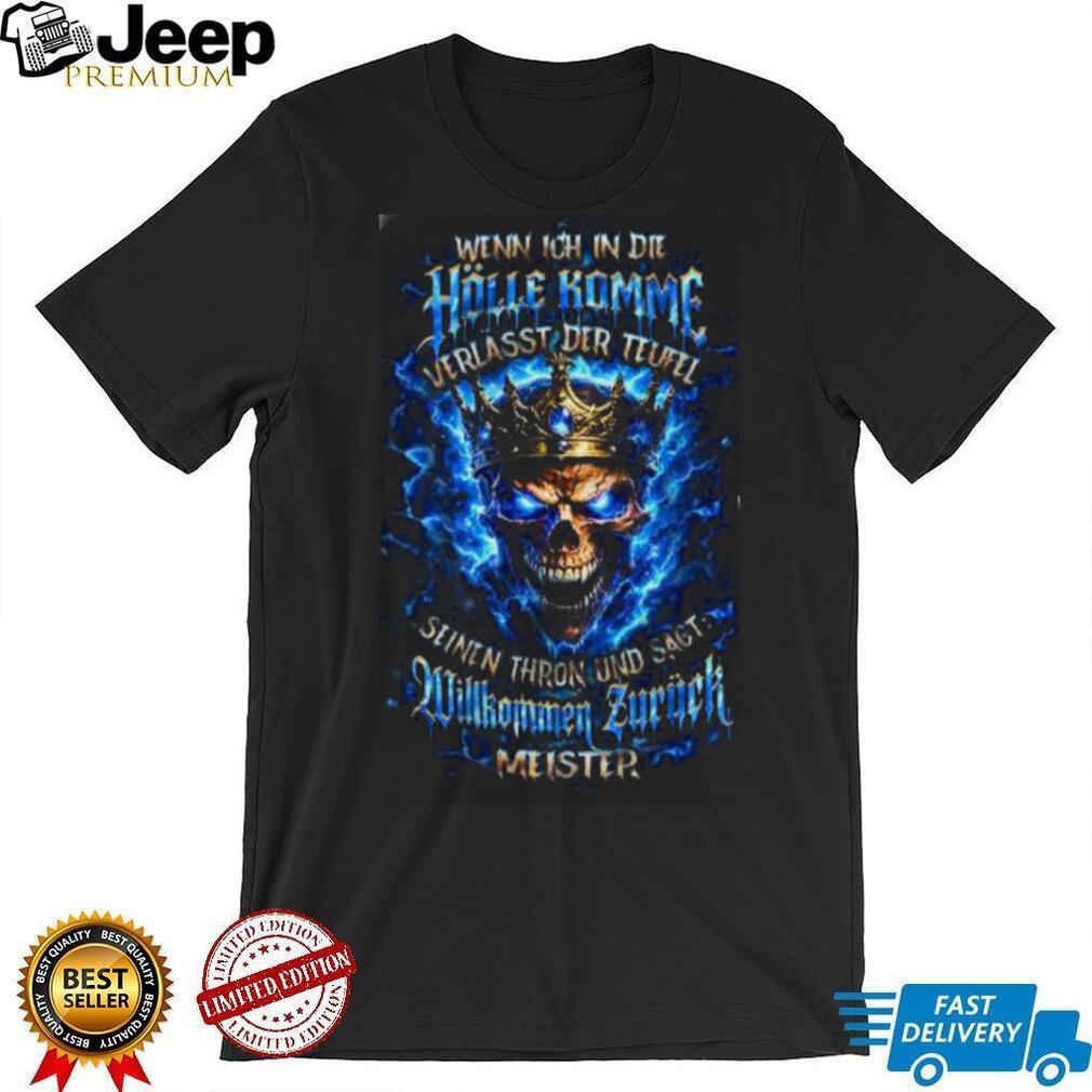 German Blue Fire Skull “Willkommen Zurück Meister” Biker T Shirt, Treat yourself or make a great gift for your loved ones