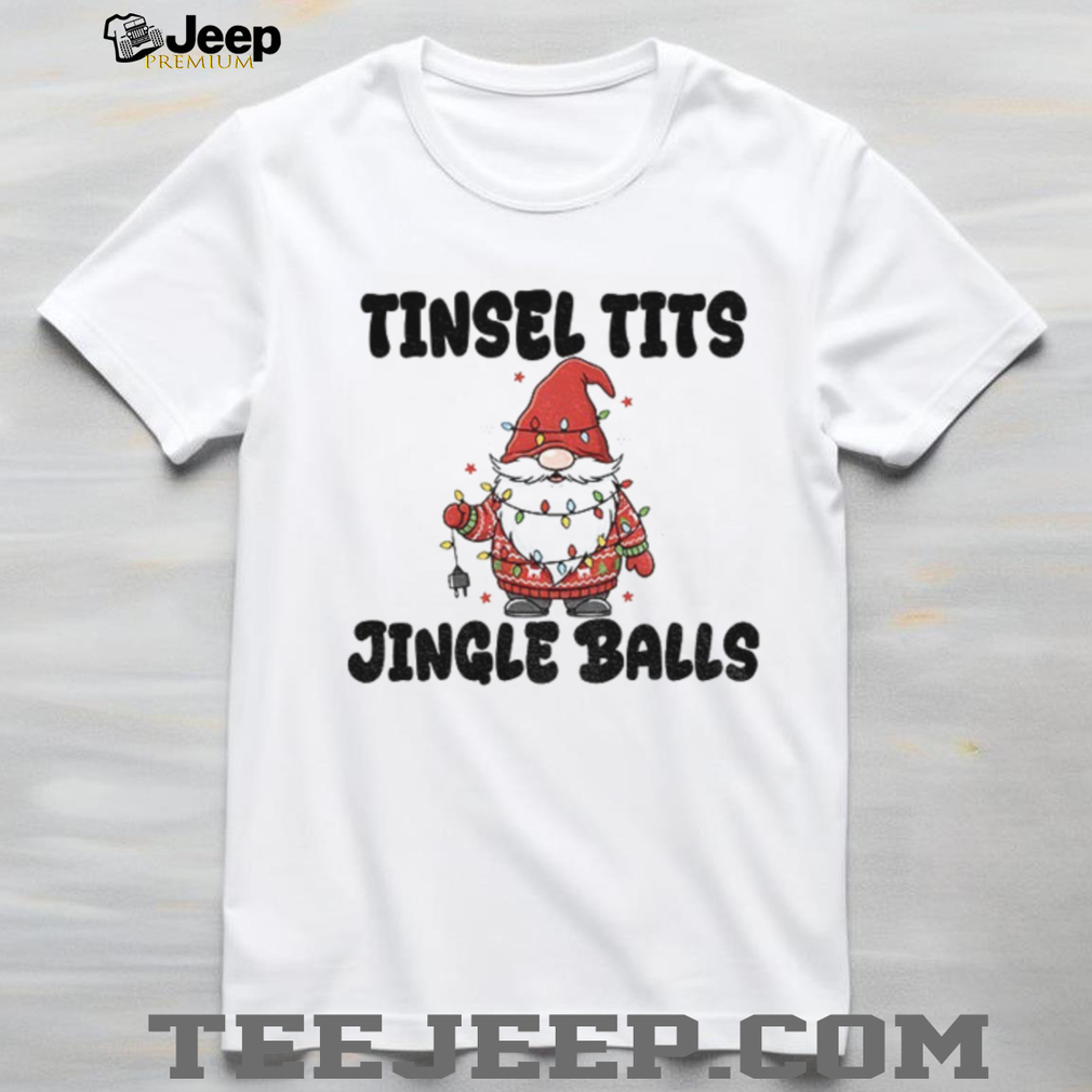 Ever wished your Christmas attire could be as hilariously bold as your holiday spirit? This isn’t your grandma’s cozy sweater; it’s the “Gnome Christmas tree tinsel tits jingle balls Merry Christmas shirt”! Perfect for those who love to inject a dose of cheeky humor into their festive celebrations, this shirt is designed to spark smiles and turn heads. If you’re tired of the same old reindeer and Santa prints, and ready to embrace a holiday look that’s truly unforgettable and playfully inappropriate, then this is the shirt you’ve been searching for to light up any festive gathering.
