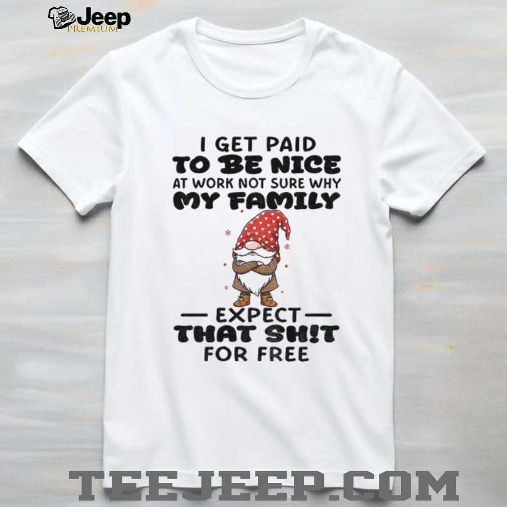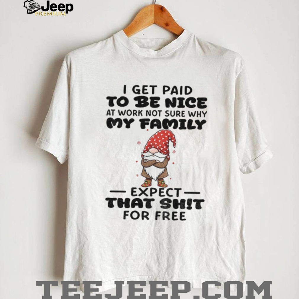 Who Rocks This Best with Gnome I get paid to me nice at work not sure why my family expect that shit for free Merry Christmas shirt