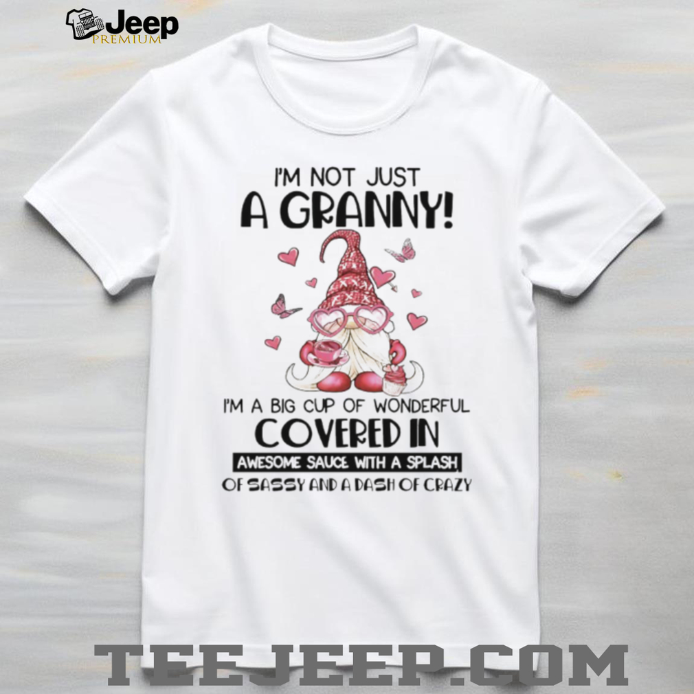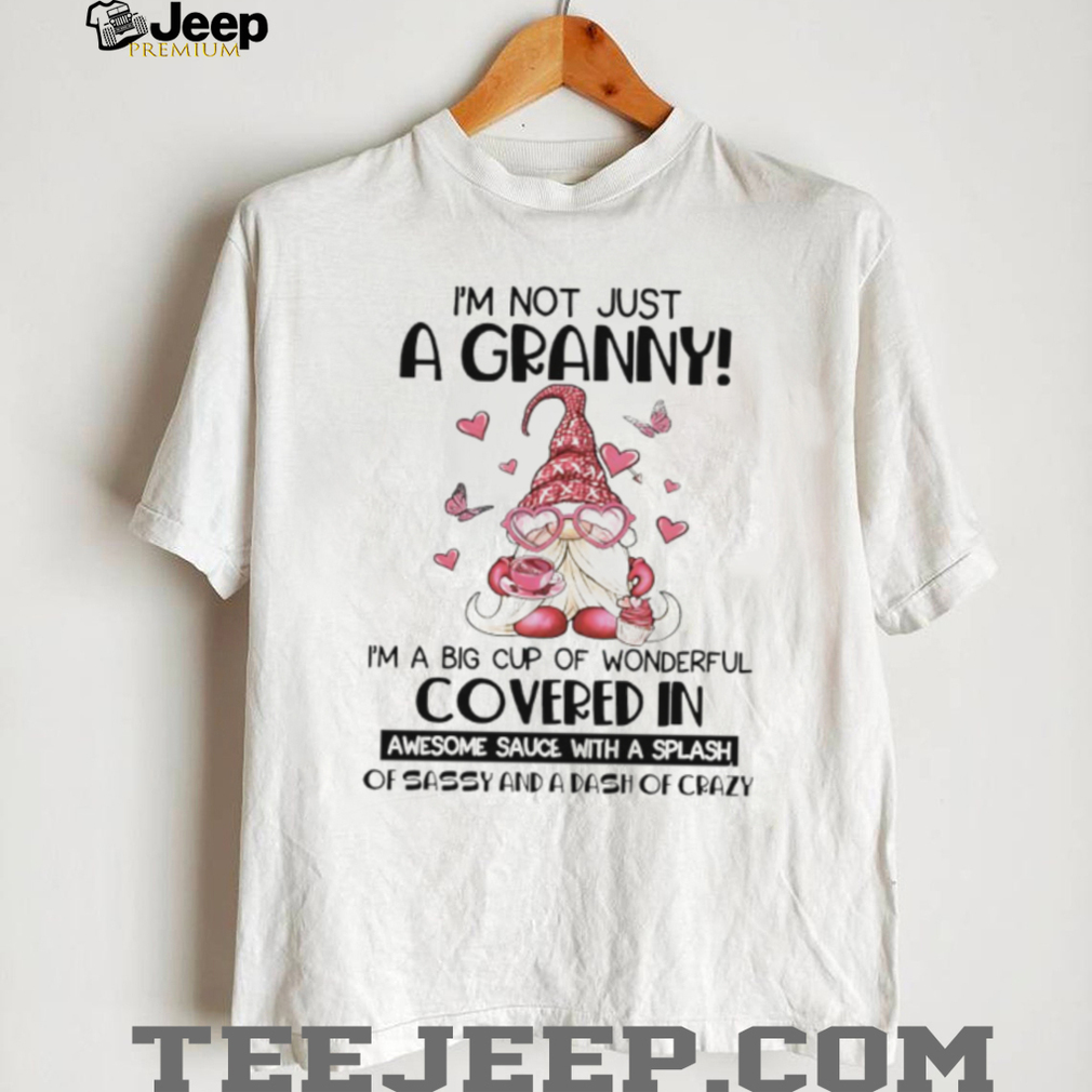 Is your grandma the queen of sass and a sprinkle of crazy? This “Gnome I’m not just a granny I’m a big cup of wonderful covered in awesome sauce with a splash of sassy and a dash of crazy shirt” is the perfect way to celebrate her! It’s a fun, quirky, and heartwarming tee that’s sure to make her smile. Get ready to show the world how awesome your granny truly is!