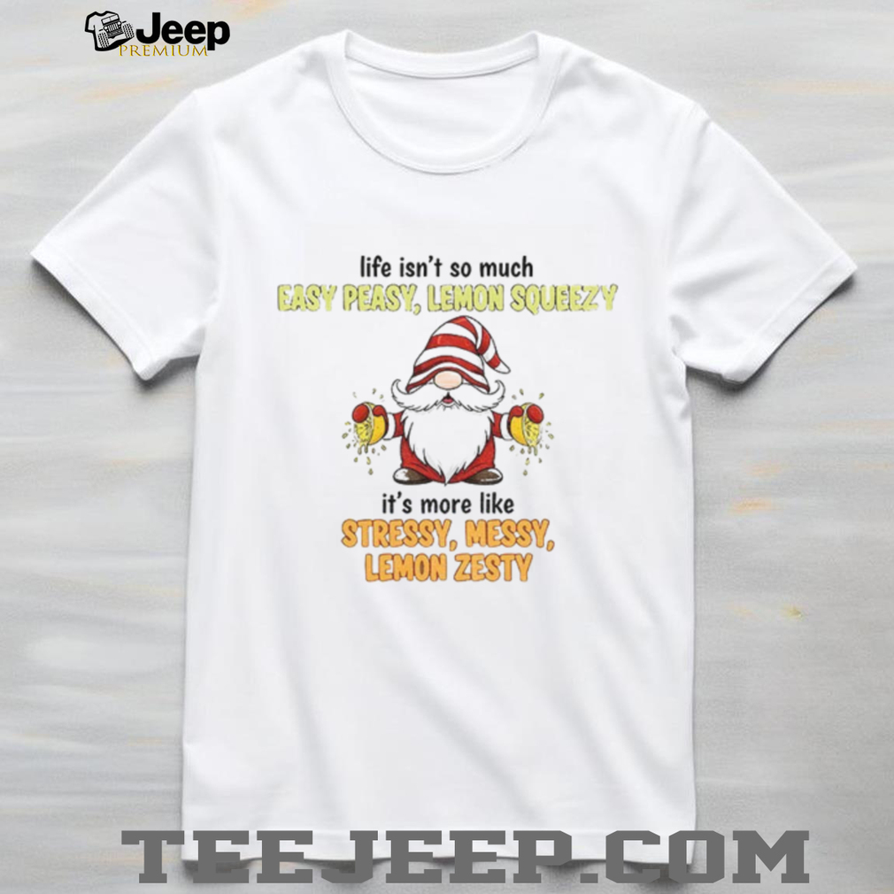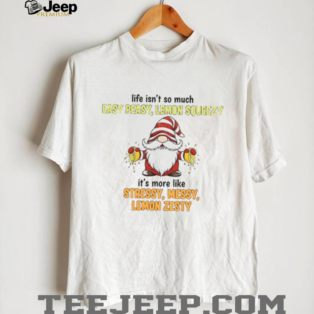 Is your life more “stressy messy lemon zesty” than “easy peasy lemon squeezy?” Then this “Gnome life isn’t so much easy peasy lemon squeezy it’s more like stressy messy lemon zesty shirt” is for you! It’s a humorous take on the ups and downs of life, perfect for those who can relate to the daily chaos.