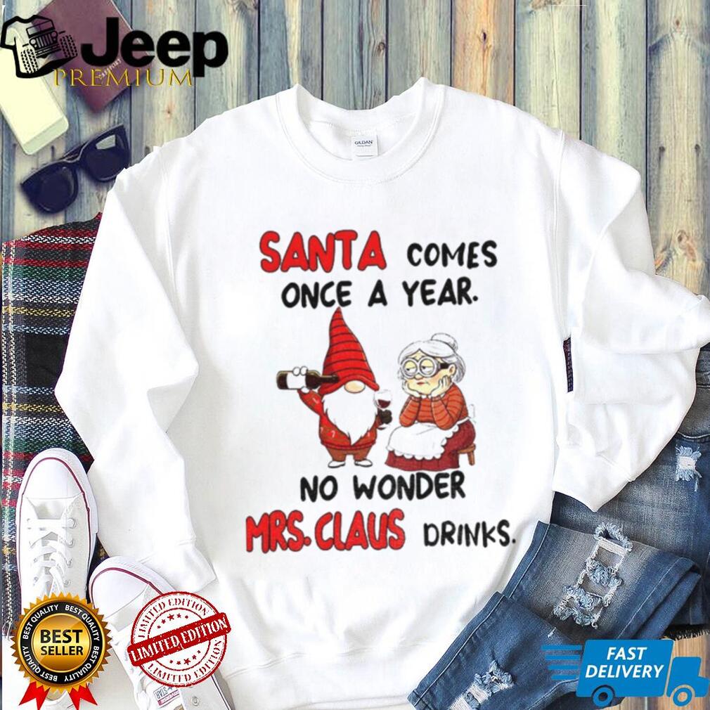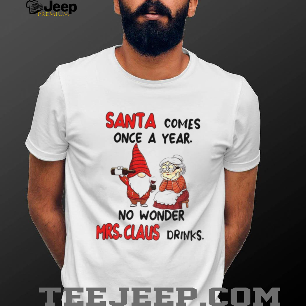 What Makes This Gnome Santa comes once a year no wonder Mrs Claus drinks Christmas shirt Epic