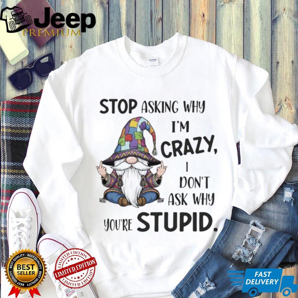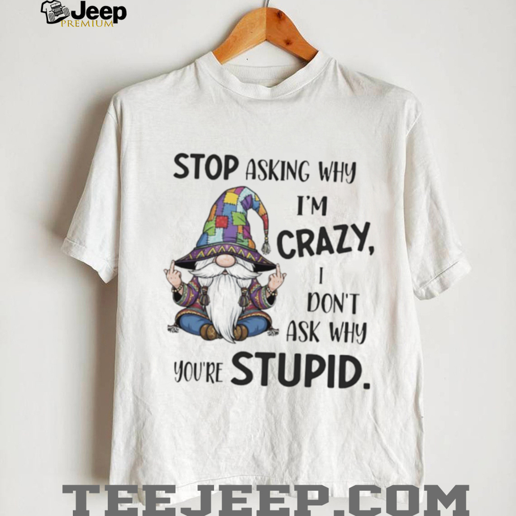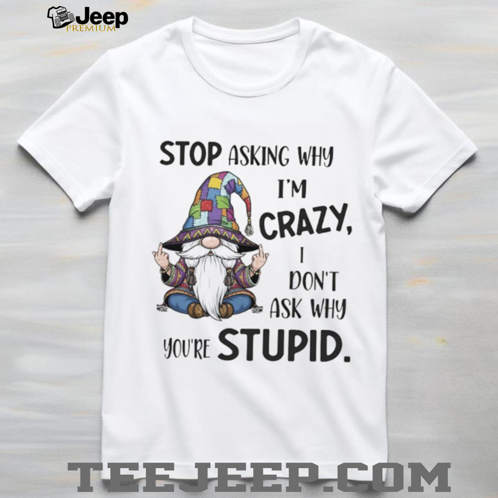 Embrace your quirky side with this hilarious “Gnome stop asking why I’m crazy I don’t ask why you’re stupid” shirt! This tee is perfect for those who love to make a statement and aren’t afraid to show off their unique sense of humor. Imagine the laughs and smiles you’ll get when people read this witty quote. It’s more than just a shirt; it’s a conversation starter and a reflection of your fun-loving personality.
