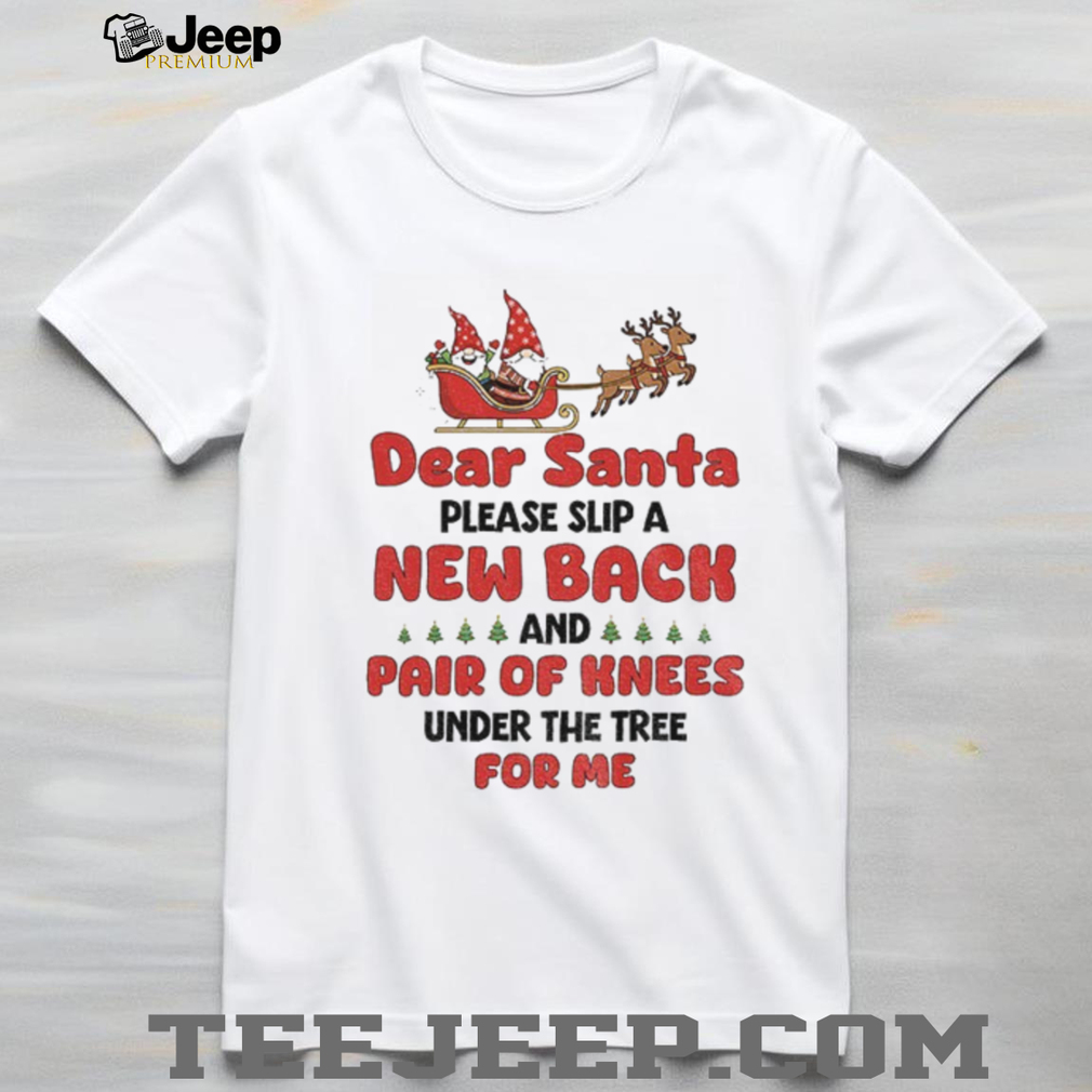 The “Gnome Xmas dear Santa please slip a new back and pair of knees under the tree for me Merry Christmas shirt” is a fantastic way to spread holiday cheer with a side of relatable humor.