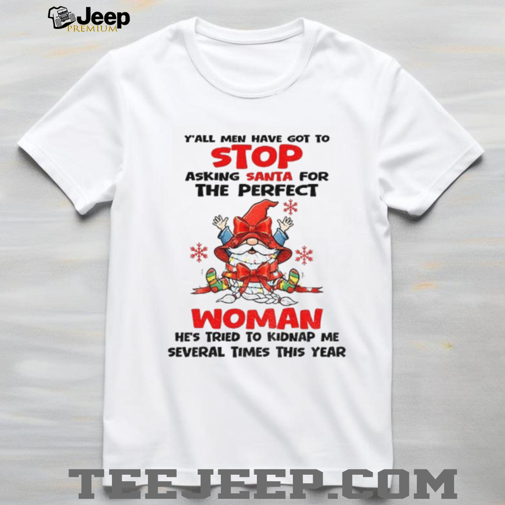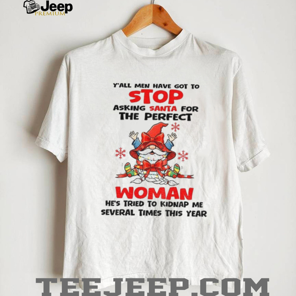 Ladies, are you tired of men asking Santa for the “perfect woman”? This “Gnome y’all men have got to stop asking santa” shirt is a hilarious response to those unrealistic expectations! It’s a funny and sassy way to express your perspective during the Christmas season and get some laughs.
