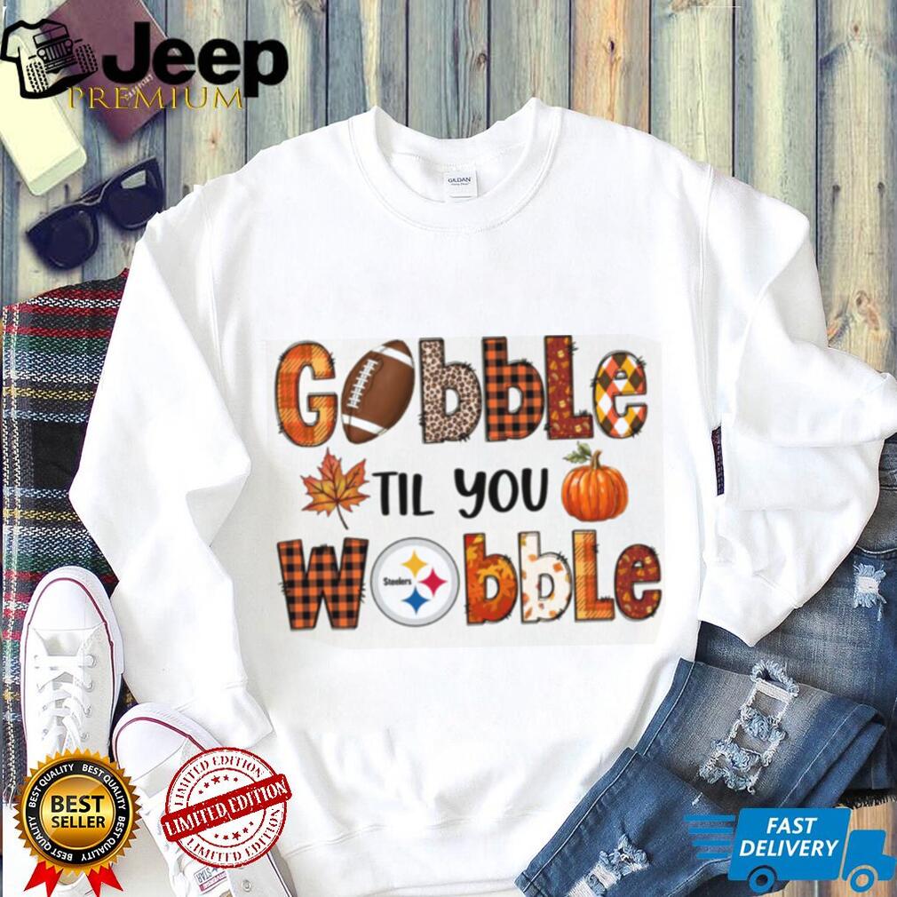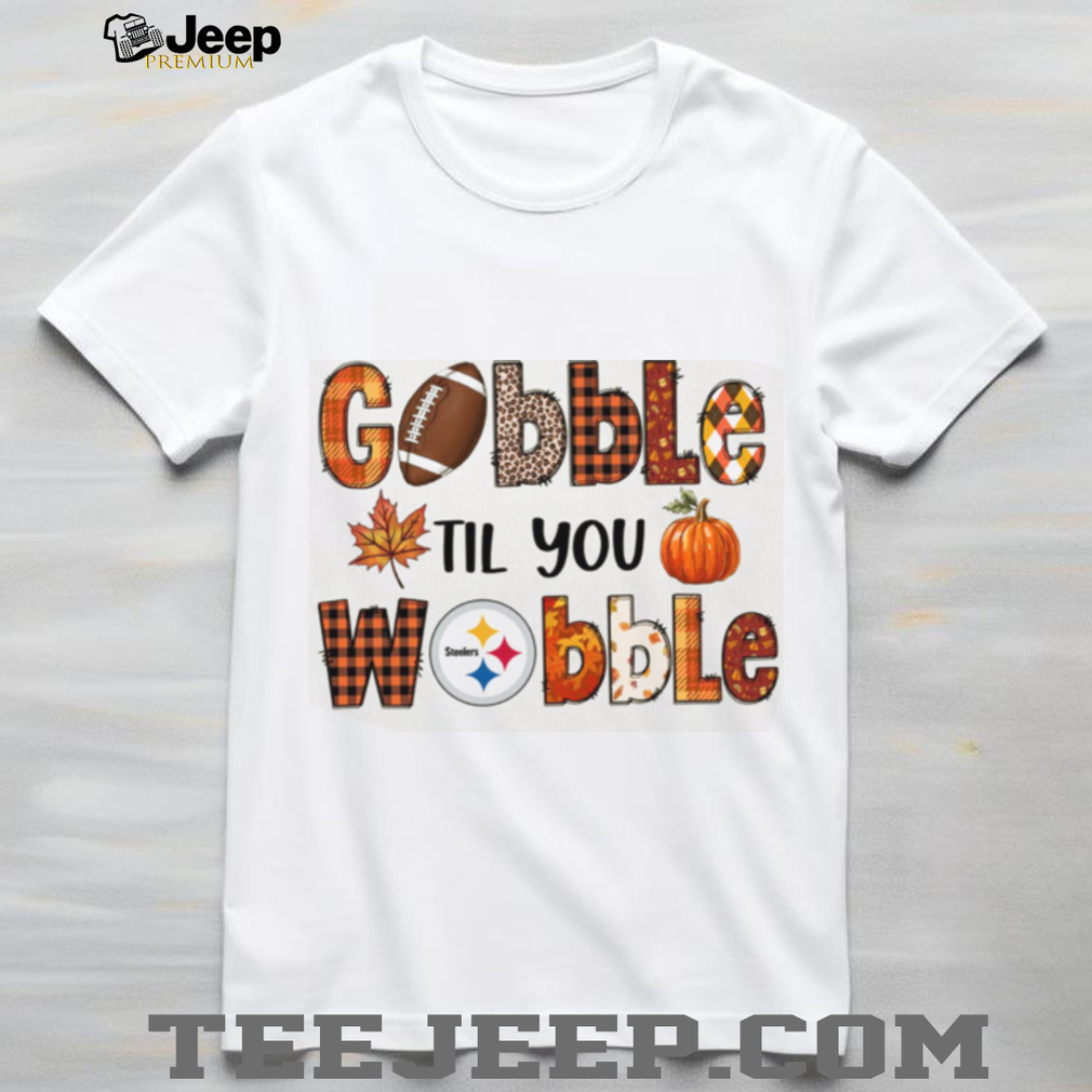 To keep your “Gobble Til You Wobble Pittsburgh Steelers T Shirt” looking its best, machine wash it inside out with cold water. Tumble dry on low or hang it to dry. Avoid ironing directly on the print to keep that hilarious design looking good!