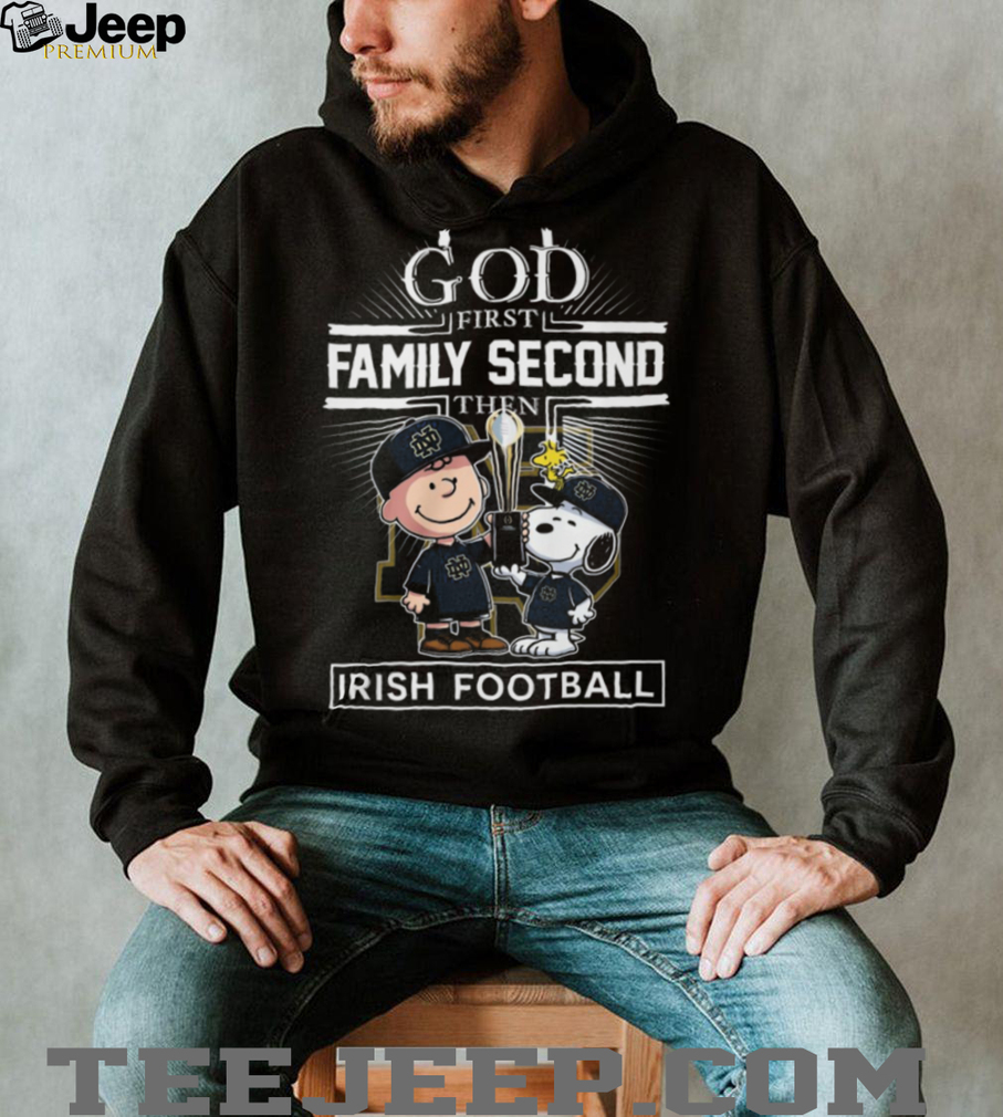 ()God First Family Second Notre Dame Irish Football Peanuts Snoopy T Shirt, Treat yourself or make a great gift for your loved ones