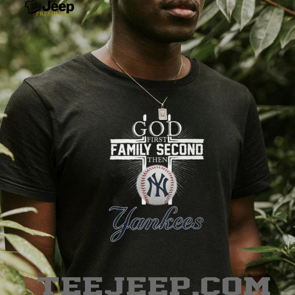(God First Family Second Then Yankees Baseball Cross T Shirt)
