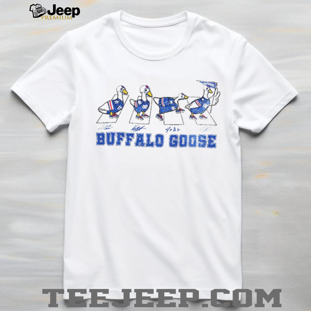 This Goose Buffalo Bills Abbey Road Game Day NFL Football signature shirt pays tribute to both the legendary band and the Bills. It’s a unique way to showcase your team spirit with a creative twist. Made from a comfortable and durable cotton blend, this shirt is perfect for tailgating, watching the game from home, or just showing off your Buffalo pride around town.