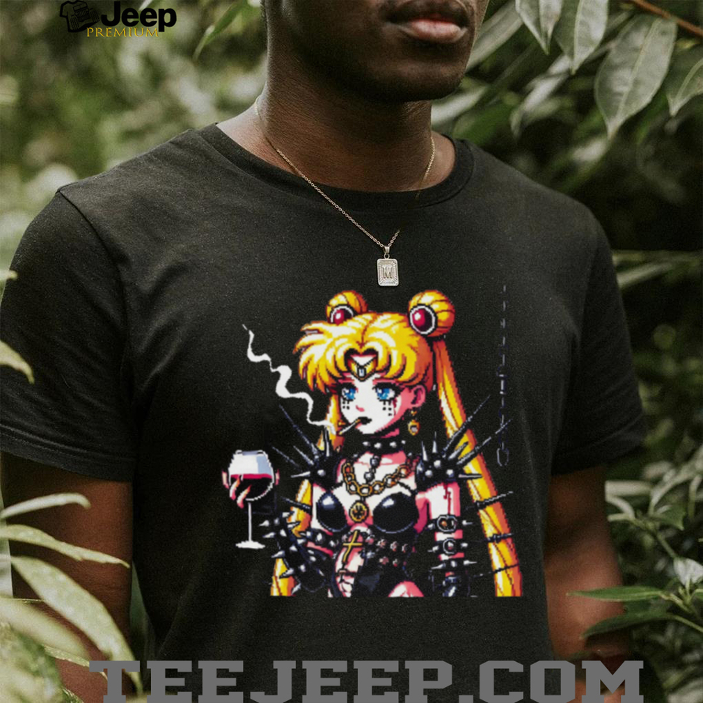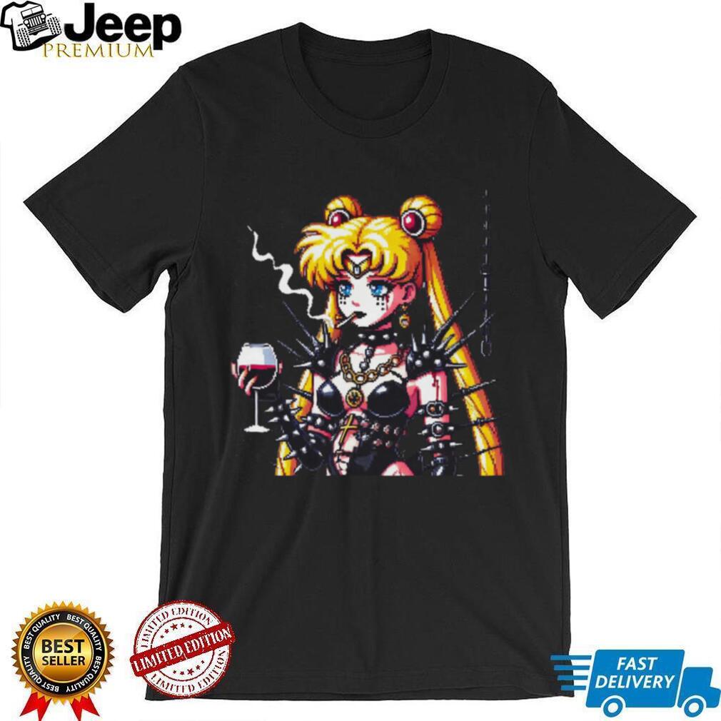Goth Pixel Art Moon Warrior Drinking Wine Retro Anime T Shirt, Treat yourself or make a great gift for your loved ones