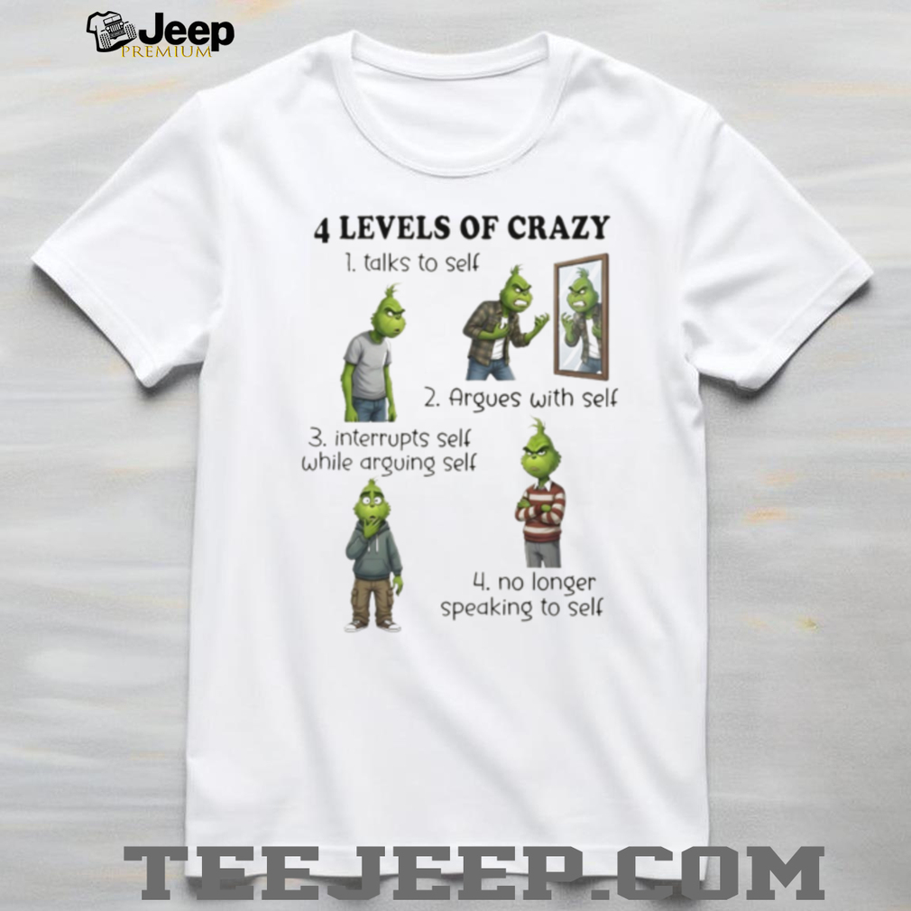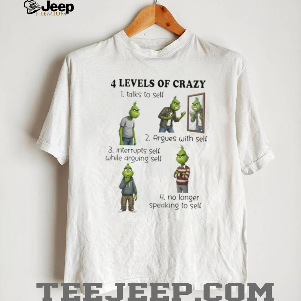 ()Grinch 4 levels of crazy talks to self argues with self interrupts self while arguing self no longer speaking to self shirt, Treat yourself or make a great gift for your loved ones