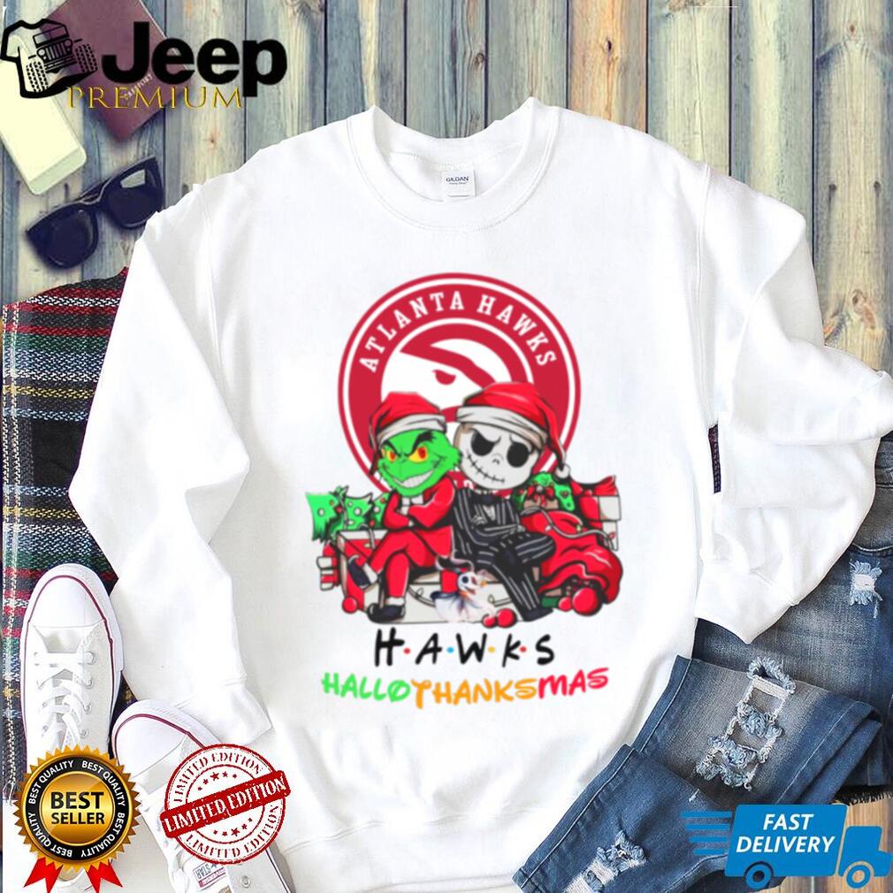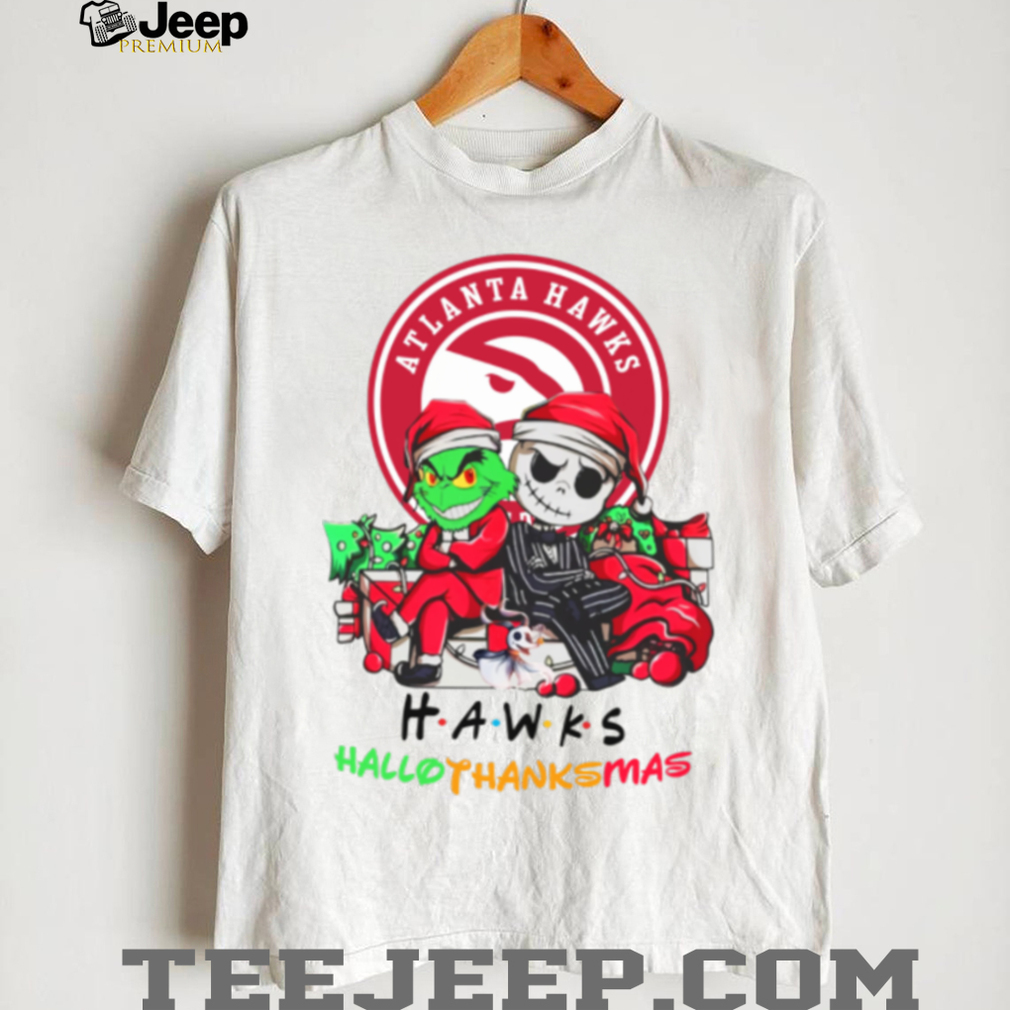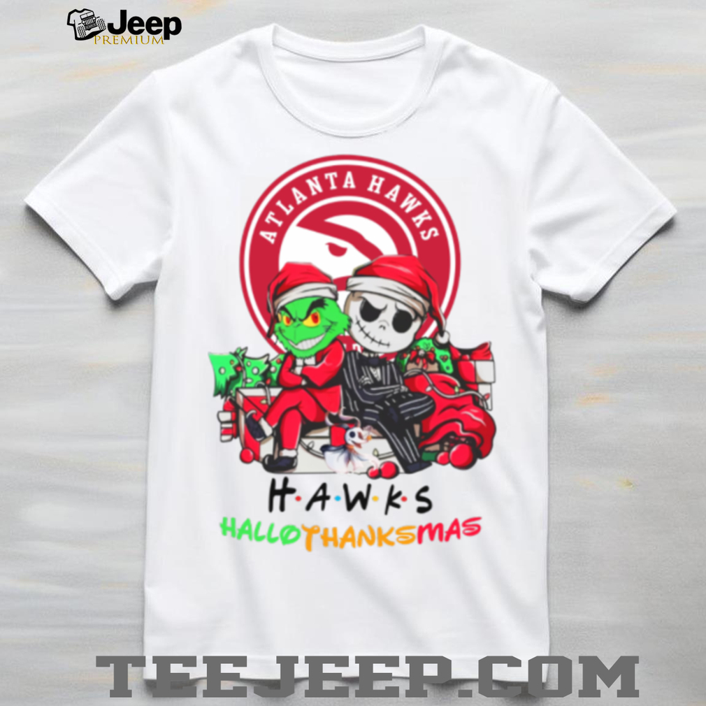 Grinch And Jack Atlanta Hawks Friends HalloThanksMas T Shirt