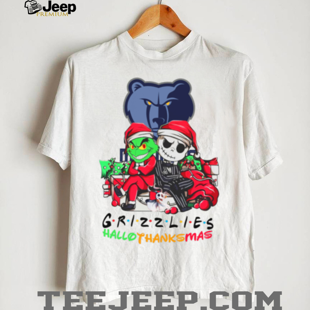 Grinch And Jack Memphis Grizzlies Friends HalloThanksMas T Shirt