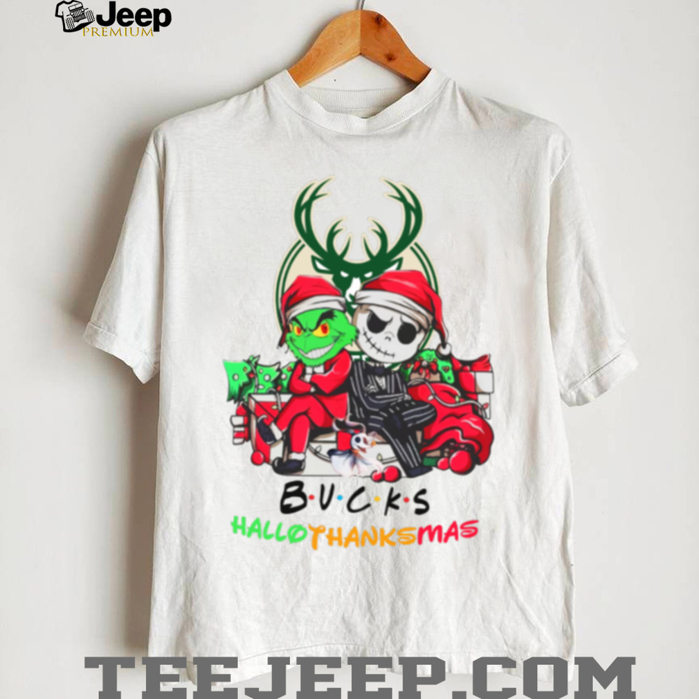 Grinch And Jack Milwaukee Bucks Friends HalloThanksMas T Shirt
