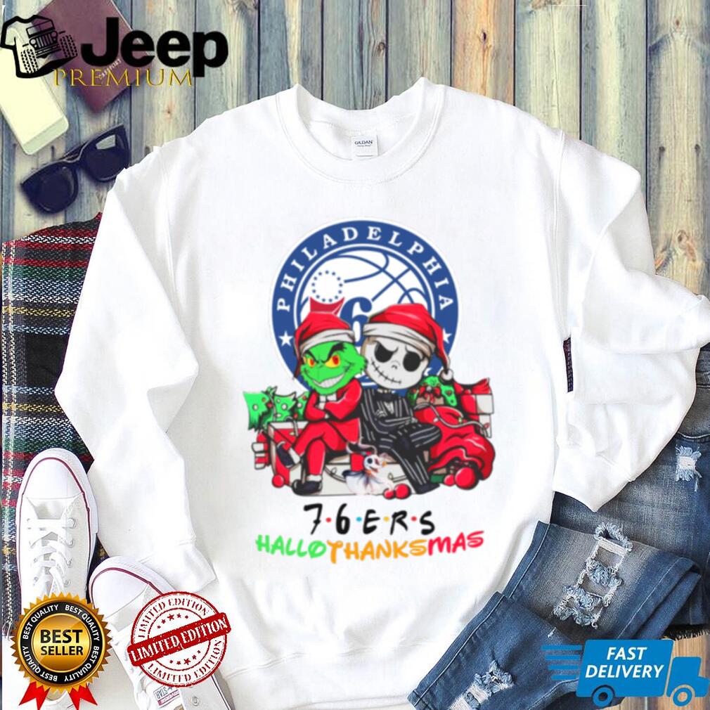Grinch And Jack Philadelphia 76ers Friends HalloThanksMas T Shirt