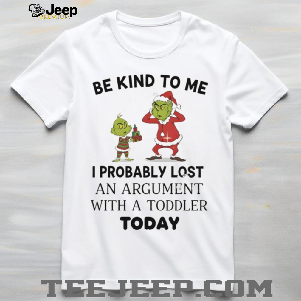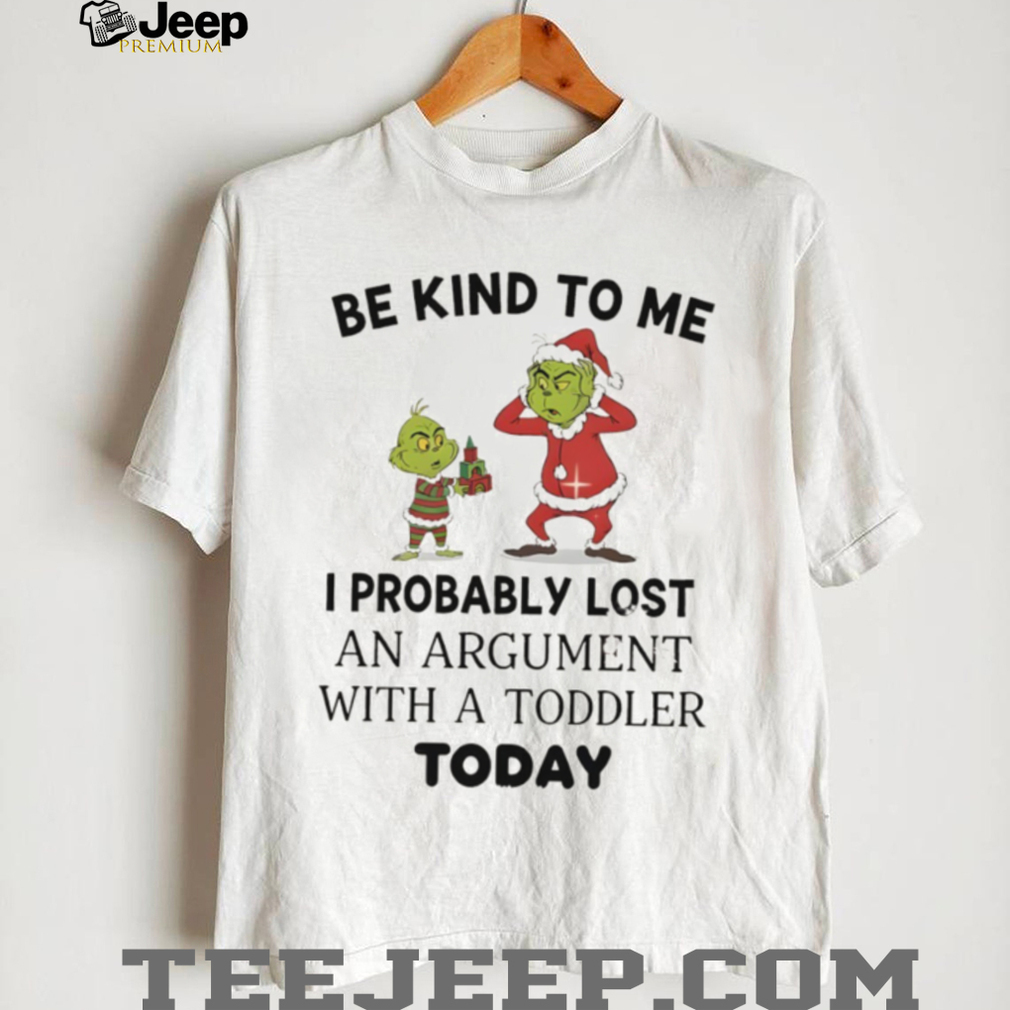 Calling all parents in the trenches of toddlerhood! This Grinch shirt is your badge of honor. “Be kind to me; I probably lost an argument with a toddler today” – a hilarious and all-too-relatable sentiment. This is the perfect way to let everyone know you’ve earned your stripes (and maybe a nap!) this holiday season.
