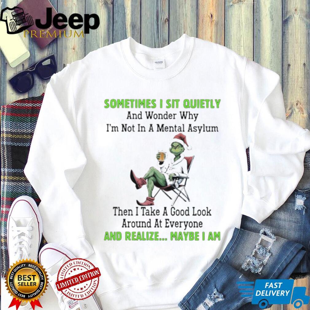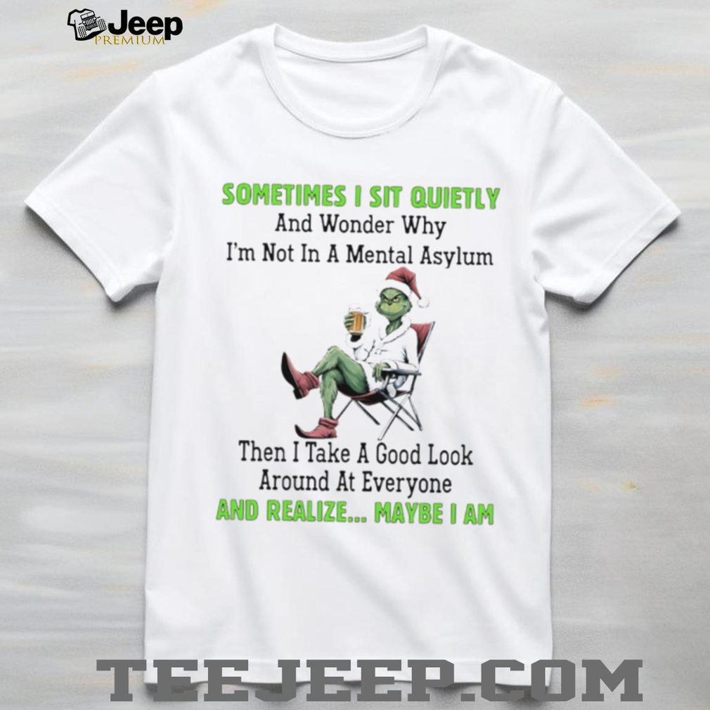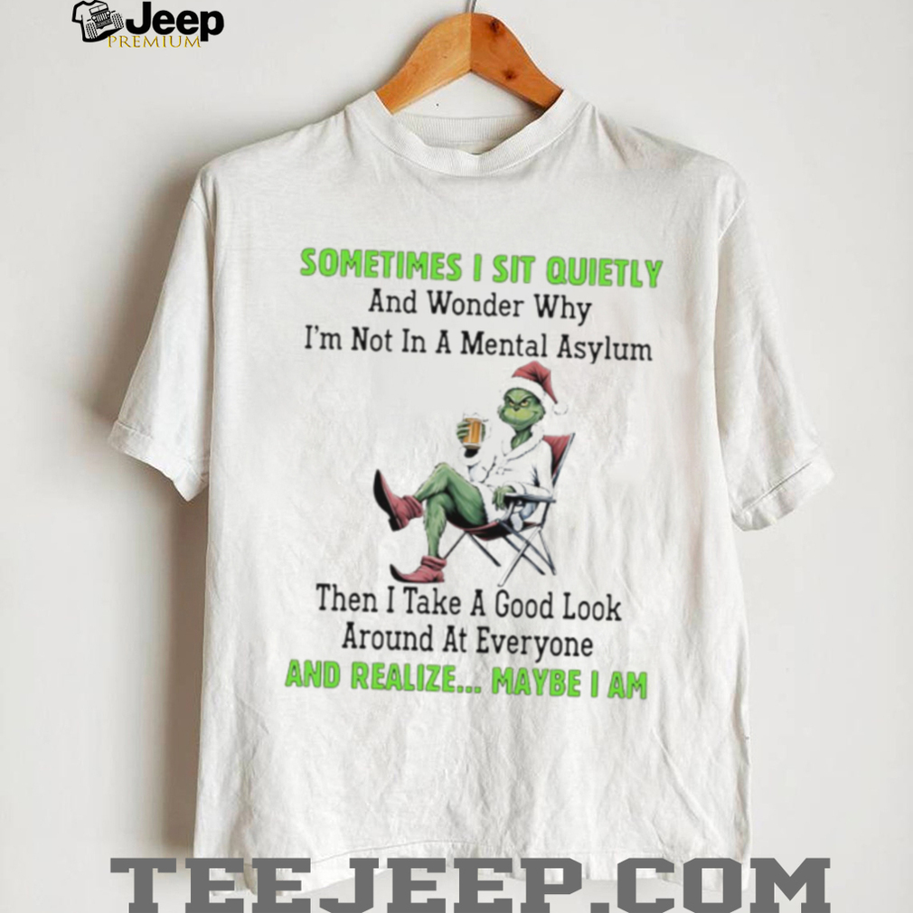 Unleash your inner Grinch this Christmas with this hilarious T-shirt! Featuring the Grinch with a beer, and the saying “sometimes I sit quietly and wonder why I’m not in a mental asylum,” this tee is perfect for those who find the holidays a little overwhelming. Wear it to your next Christmas party and spread some sarcastic cheer!