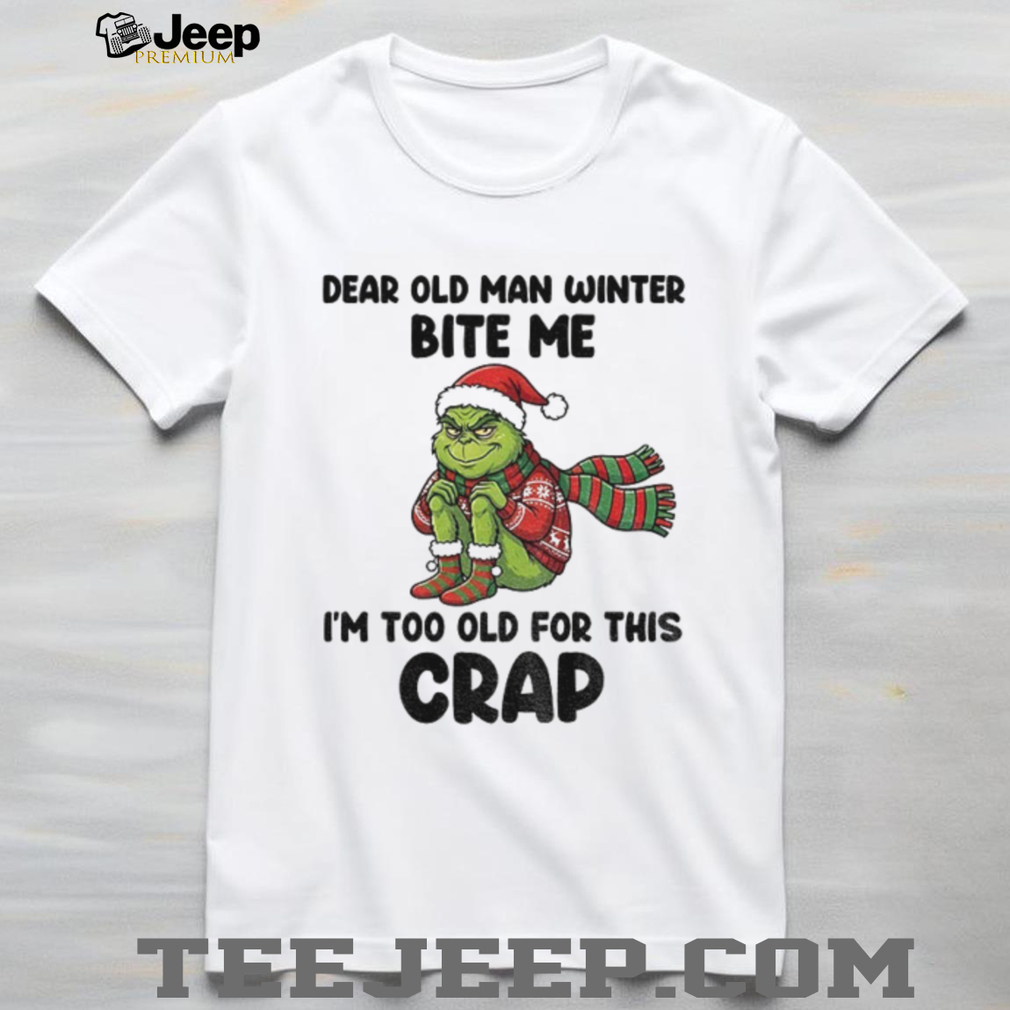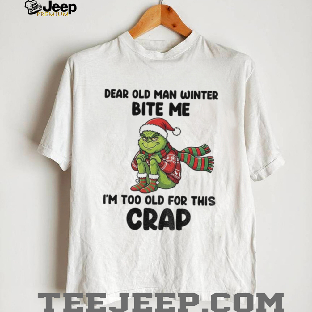 Feeling a bit weary of the holiday season? This Grinch T-shirt speaks your truth! Featuring the phrase “Grinch dear old man winter bite me I’m too old for this crap Christmas shirt”, this tee is perfect for expressing your weariness of winter. If you’re seeking a Christmas shirt that’s cynical and comfy, this one is for you. Ideal for holiday gatherings, casual outings, or adding a dose of sarcastic fun to your everyday look.