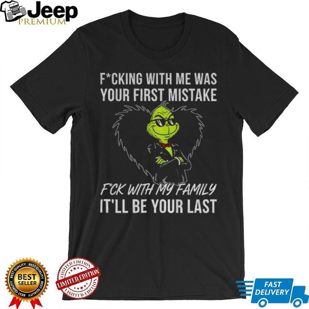 Looking for a Christmas shirt that’s NOT full of sugar and spice? This “Grinch fucking with me was your first mistake fck with my family it’ll be your last shirt” tells it like it is. Perfect for those who take their holiday boundaries seriously (and have a dark sense of humor)!