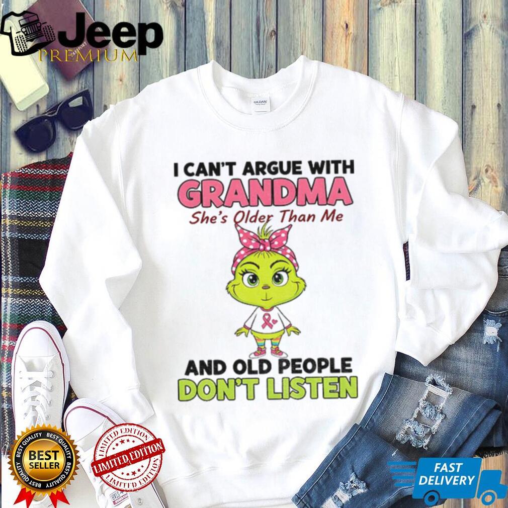 The holidays are coming, and so are the family arguments! This “Grinch I can’t argue with grandma she’s older than me and old people don’t listen shirt” perfectly captures the spirit of the season with a healthy dose of sarcasm. If you’ve got a grandma who’s always right (even when she’s wrong), this shirt is for you!