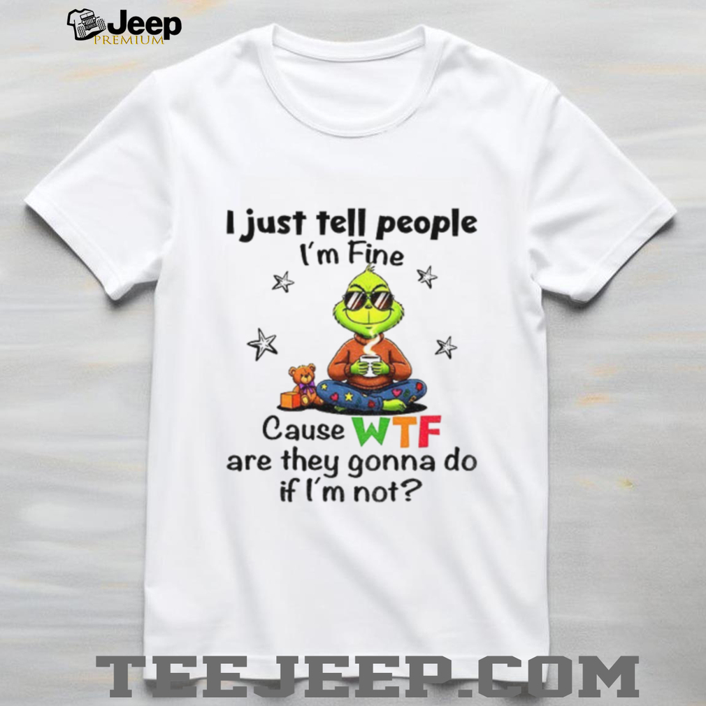 Channel your inner Grinch this Christmas with this brutally honest “I Just Tell People I’m Fine” shirt! Featuring the Grinch and the saying “I just tell people I’m fine because WTF are they gonna do if i’m not,” this tee is perfect for those who appreciate sarcasm, honesty, and a touch of Grinchy indifference. It’s a funny and edgy way to express how you really feel during the holiday season!
