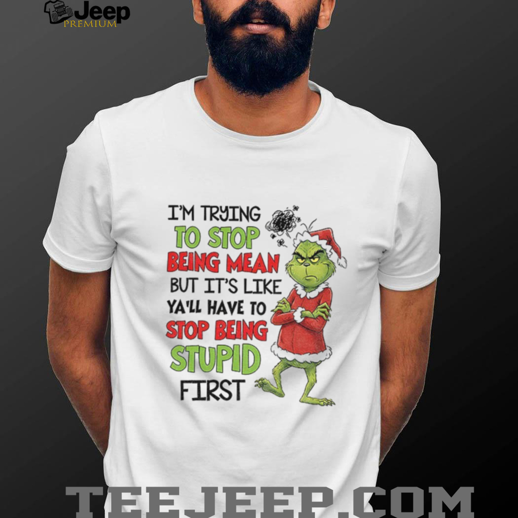 What Makes This Grinch I’m trying to stop being mean but it’s like ya’ll have to stop being stupid first Christmas shirt Epic