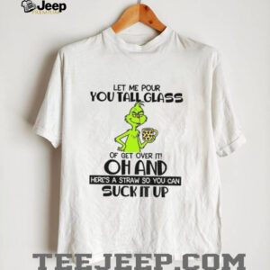 Serve up some holiday sass with this “Grinch Let Me Pour You a Tall Glass of Get Over It” Christmas shirt! This tee is perfect for those with a sarcastic sense of humor, Grinch fans, and anyone who wants to add a bit of edge to their Christmas attire. It’s sure to get a laugh (or a side-eye) at your next holiday gathering!