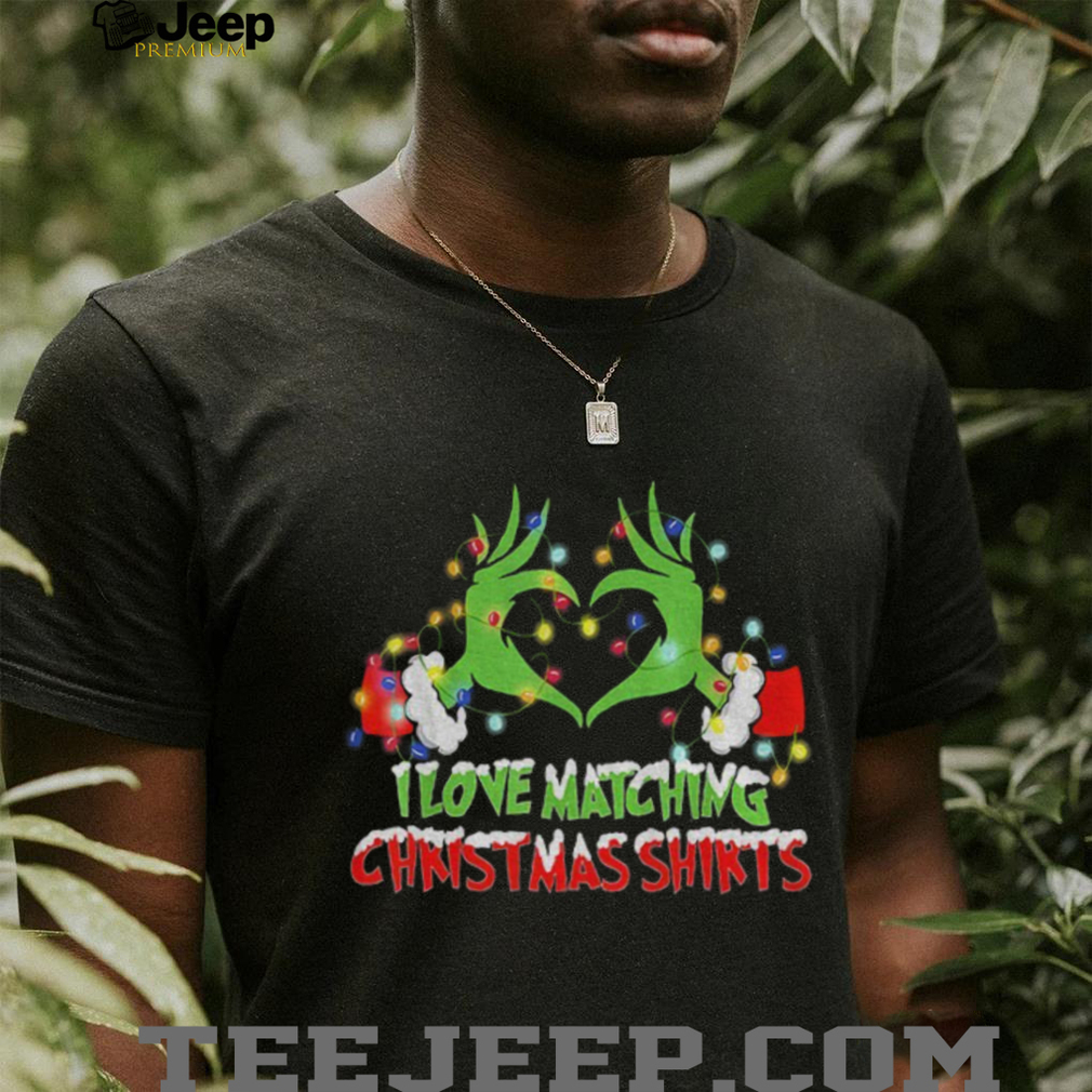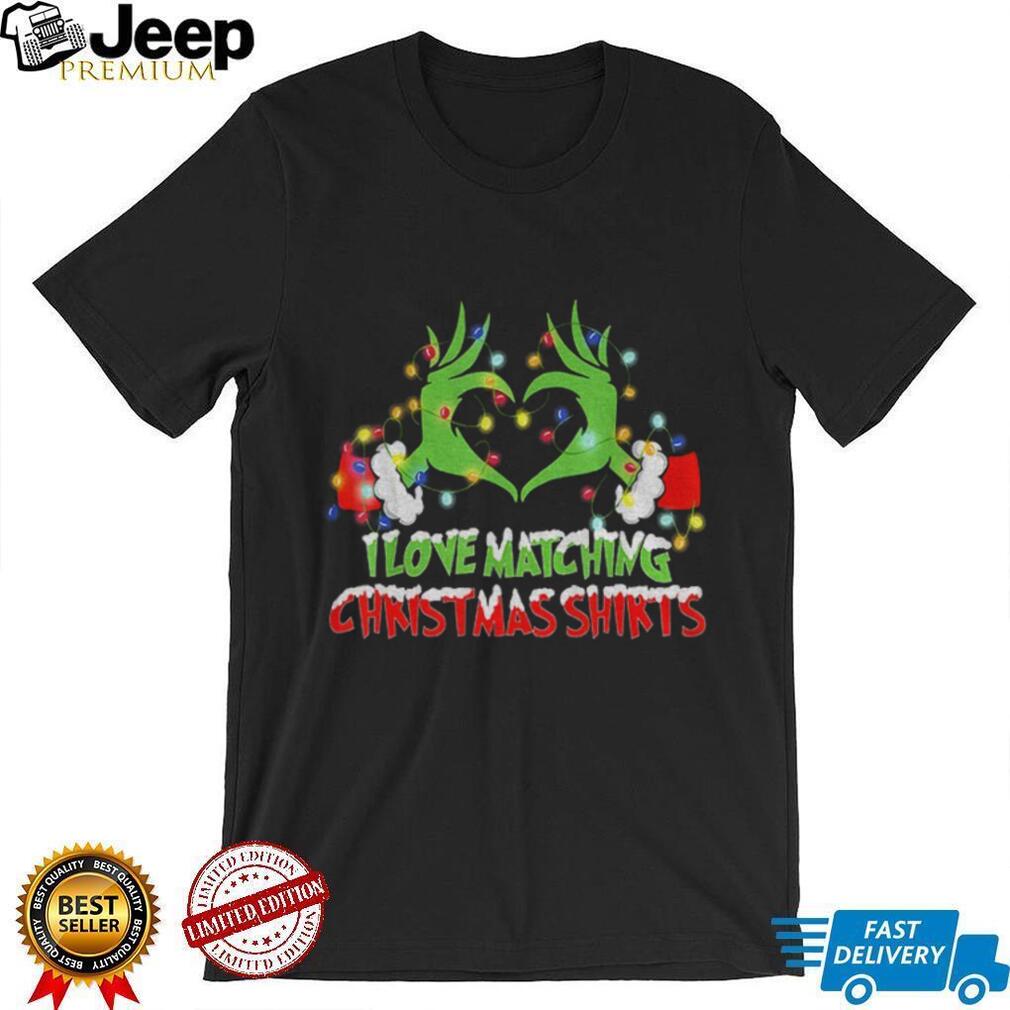 Grinch love hand signs I love matching Christmas Merry Christmas shirt