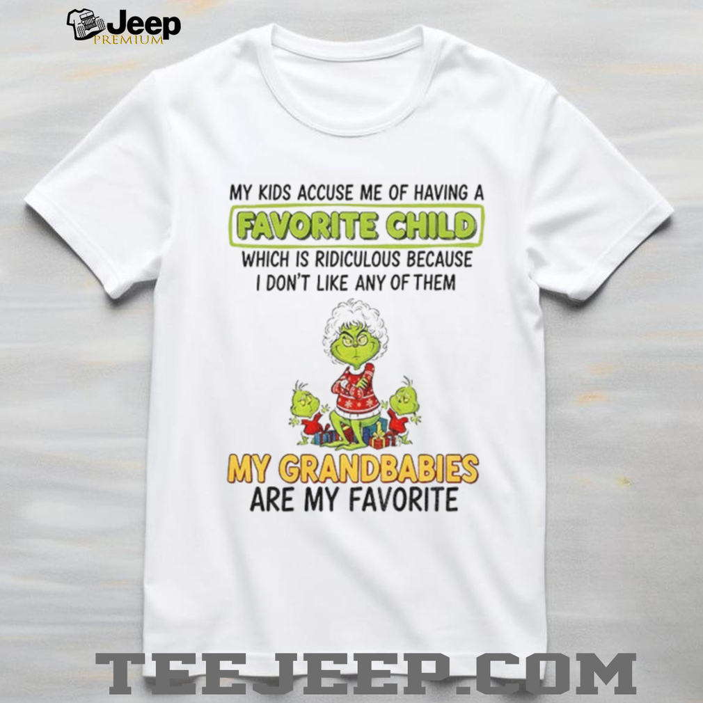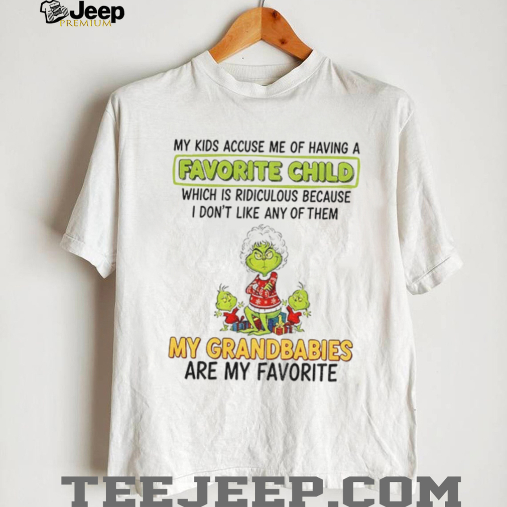 Christmas can be chaotic, especially when kids are involved! This “Grinch my kids accuse me of having a favorite child” shirt perfectly captures the humor (and maybe a little truth) of the holiday season. It’s a fun way to show your Grinchy side with a touch of parental sarcasm.