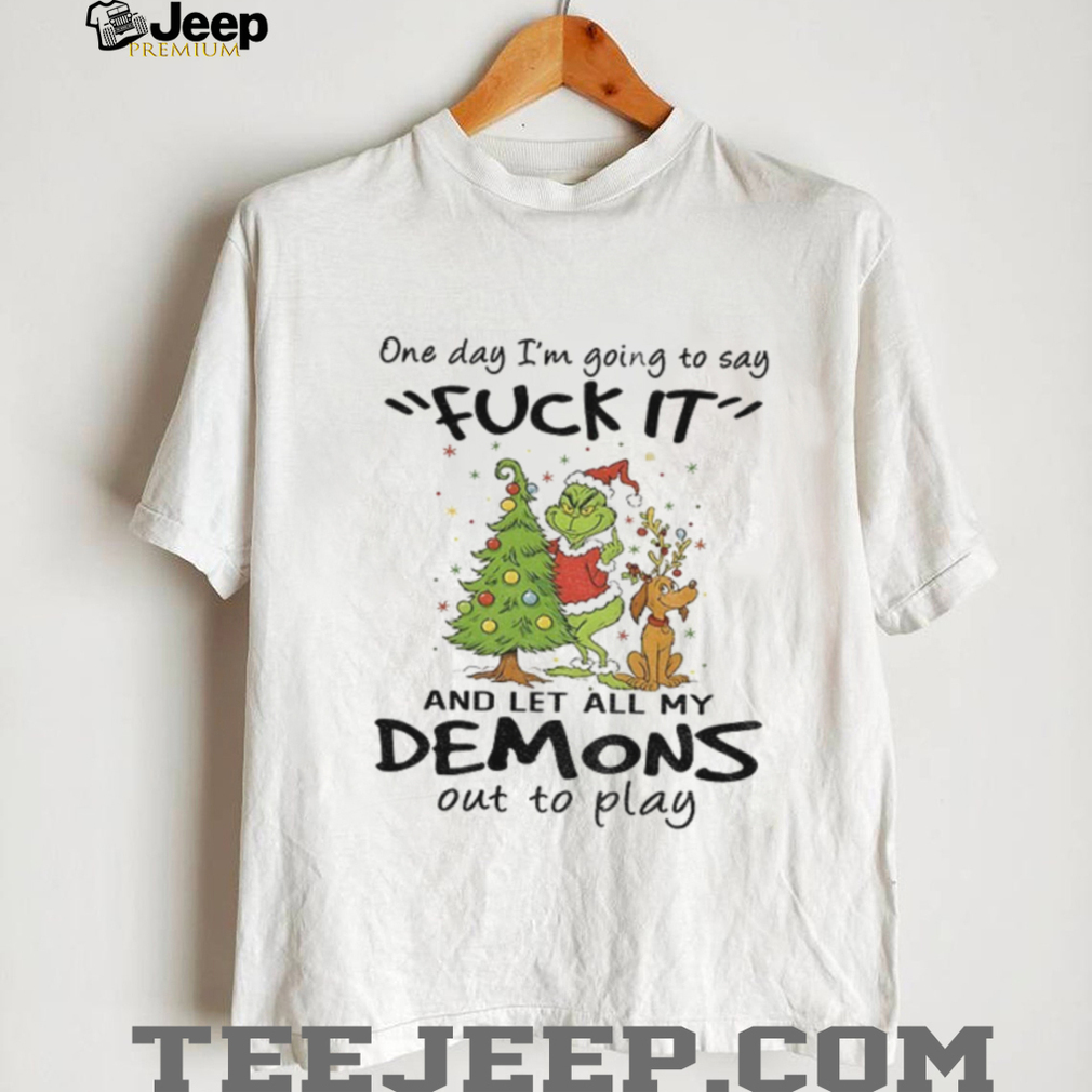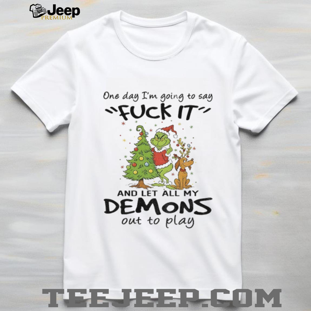 Ever feel like you just want to let loose during the holidays? This “Grinch one day I’m going to say f*** it and let all my demons out to play Merry Christmas shirt” is your perfect festive declaration! It’s for anyone who loves the Grinch’s mischievous charm and a good laugh. Stand out at any holiday gathering with this hilariously relatable Grinch tee that captures the true spirit of playful rebellion.