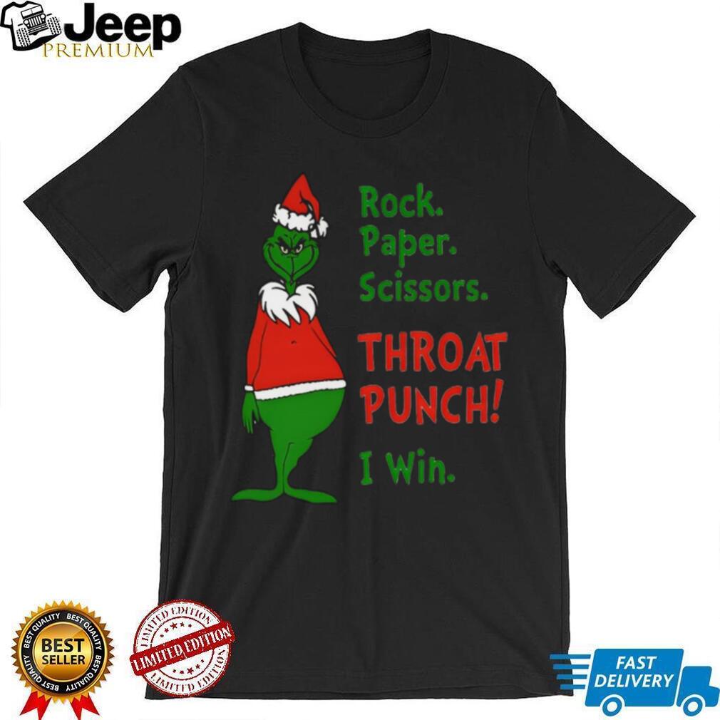 Grinch Rock Paper Scissors Throat Punch I Win Christmas Shirt