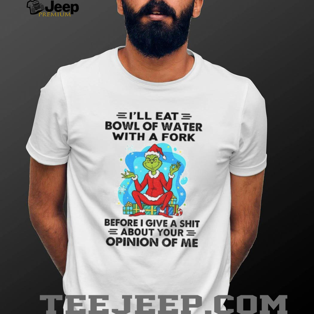 Embrace your inner Grinch this holiday season with this hilarious T-shirt! Featuring the Grinch as Santa Claus with a sassy saying, “I’ll eat bowl of water with a fork before I give a shit about your Christmas,” it’s perfect for those who prefer a little sarcasm with their Christmas cheer. This shirt is guaranteed to get a laugh and set you apart from the carol-singing crowd.